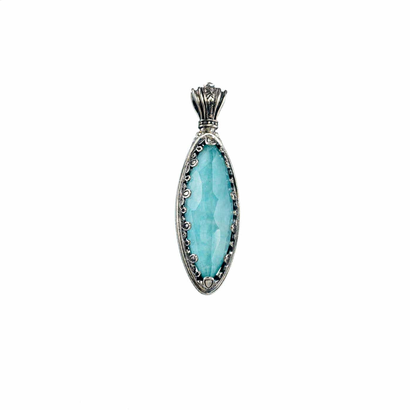 Pendant in sterling silver with doublet stone 10x30mm and a tiny garnet in the top.