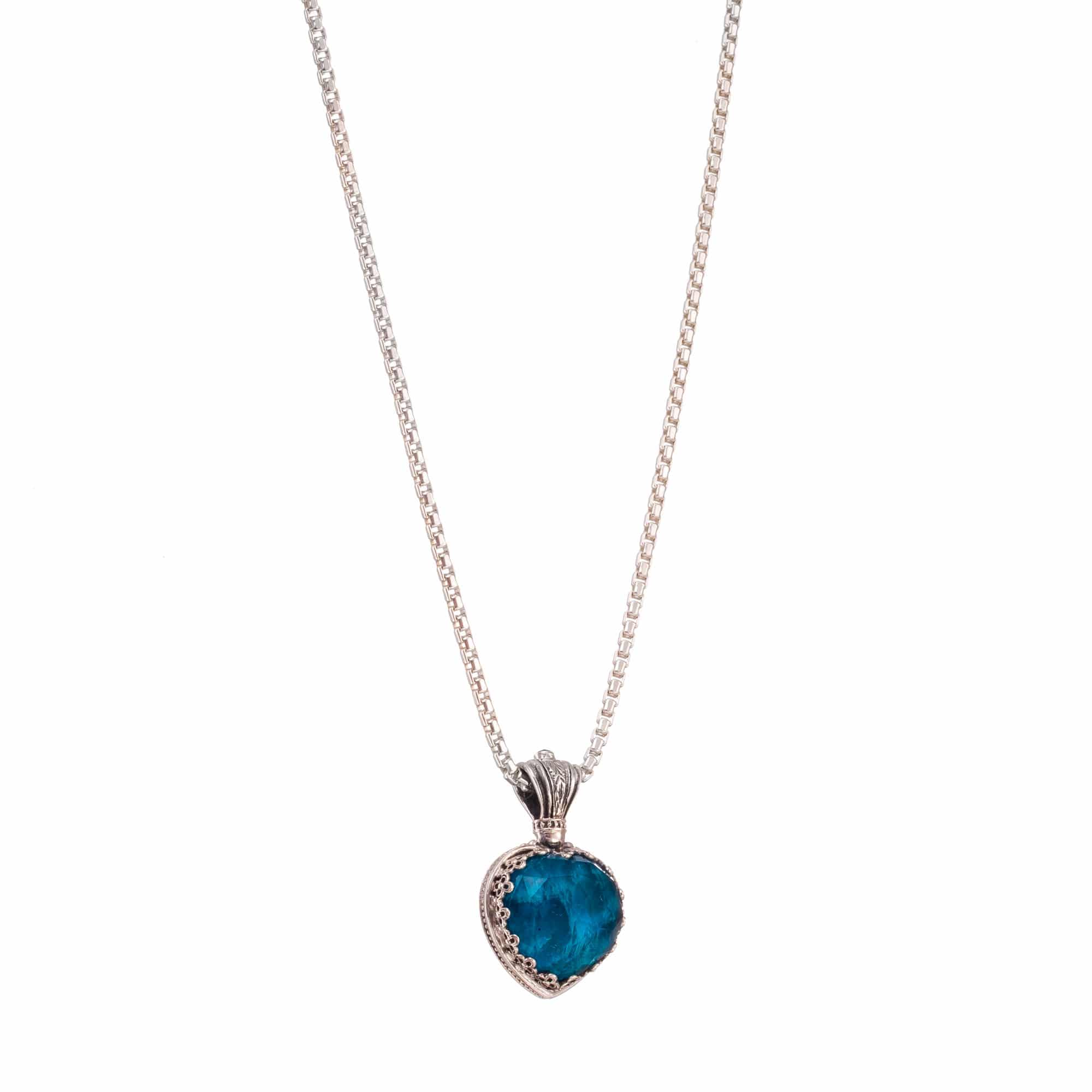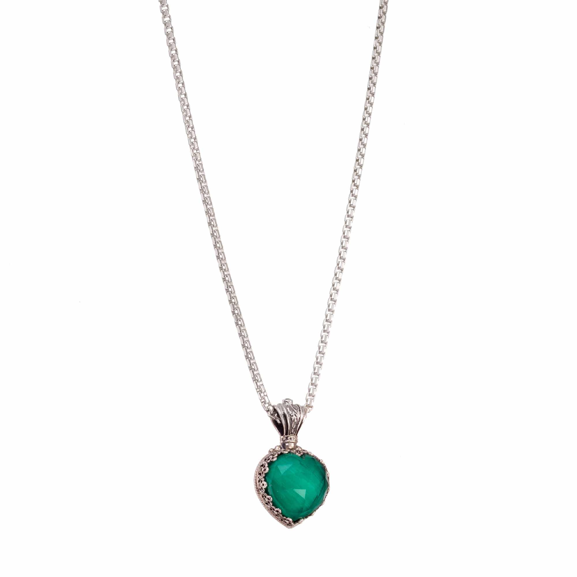 Pendant in sterling silver with doublet stone 15mm and a tiny garnet in the top.