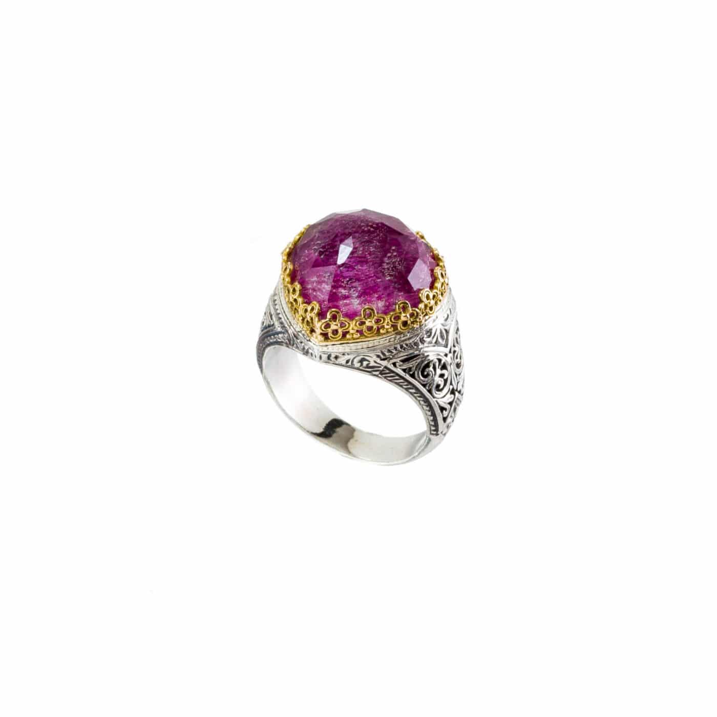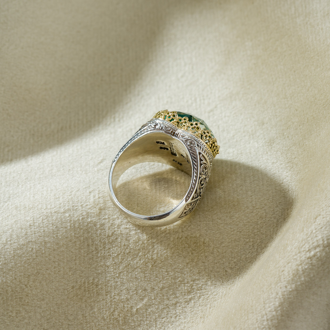 Ring in 18K solid Yellow Gold and sterling silver with doublet stone 15mm.