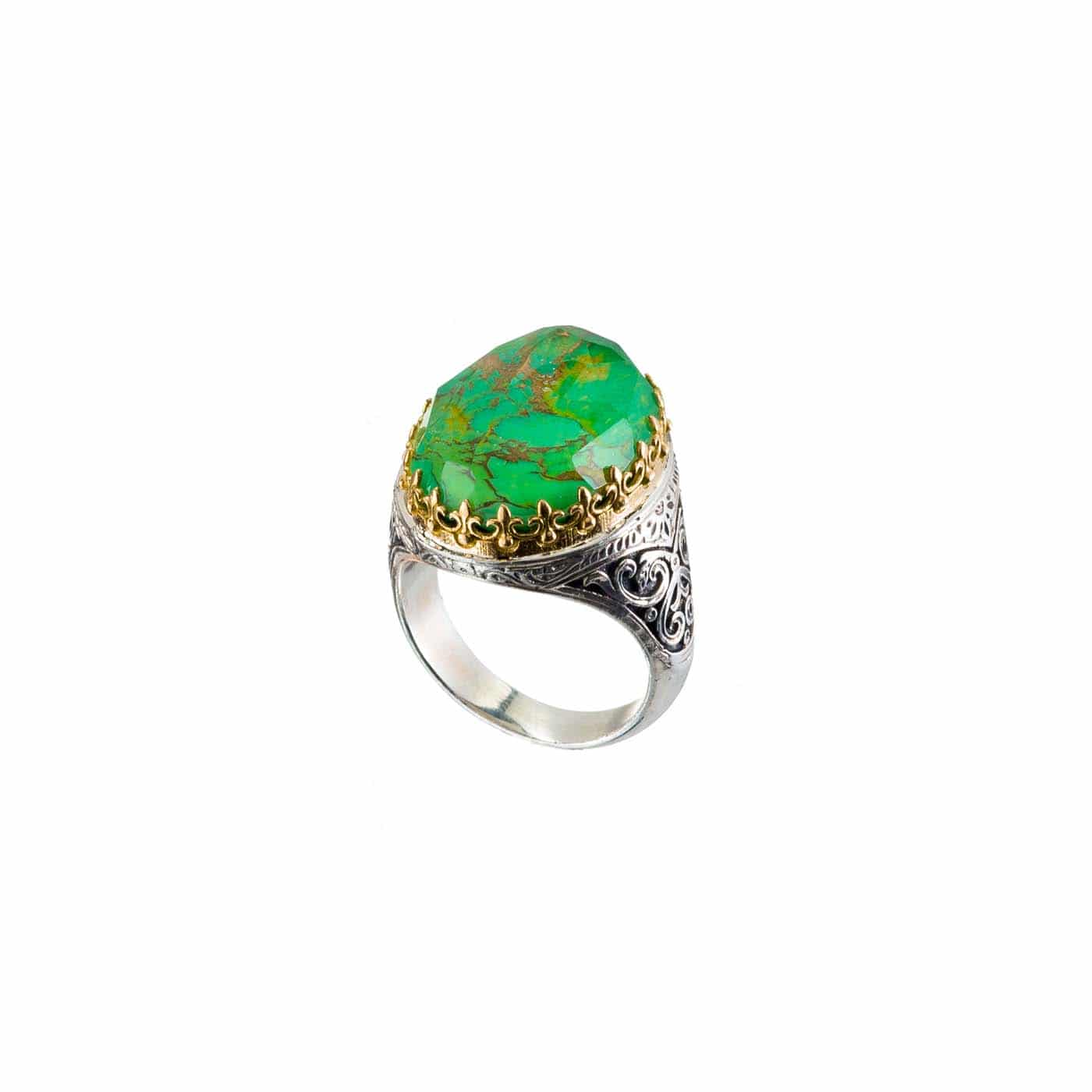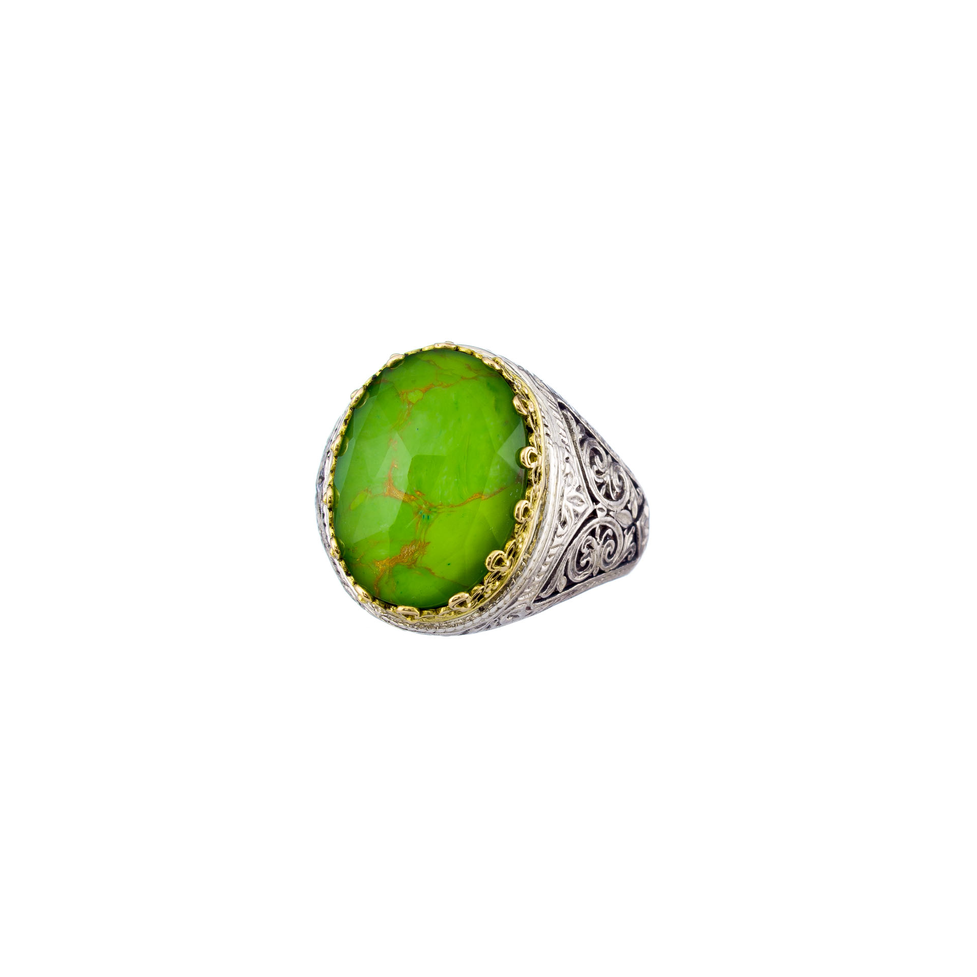 Ring in 18K solid Yellow Gold and sterling silver with doublet stone 12x16mm.