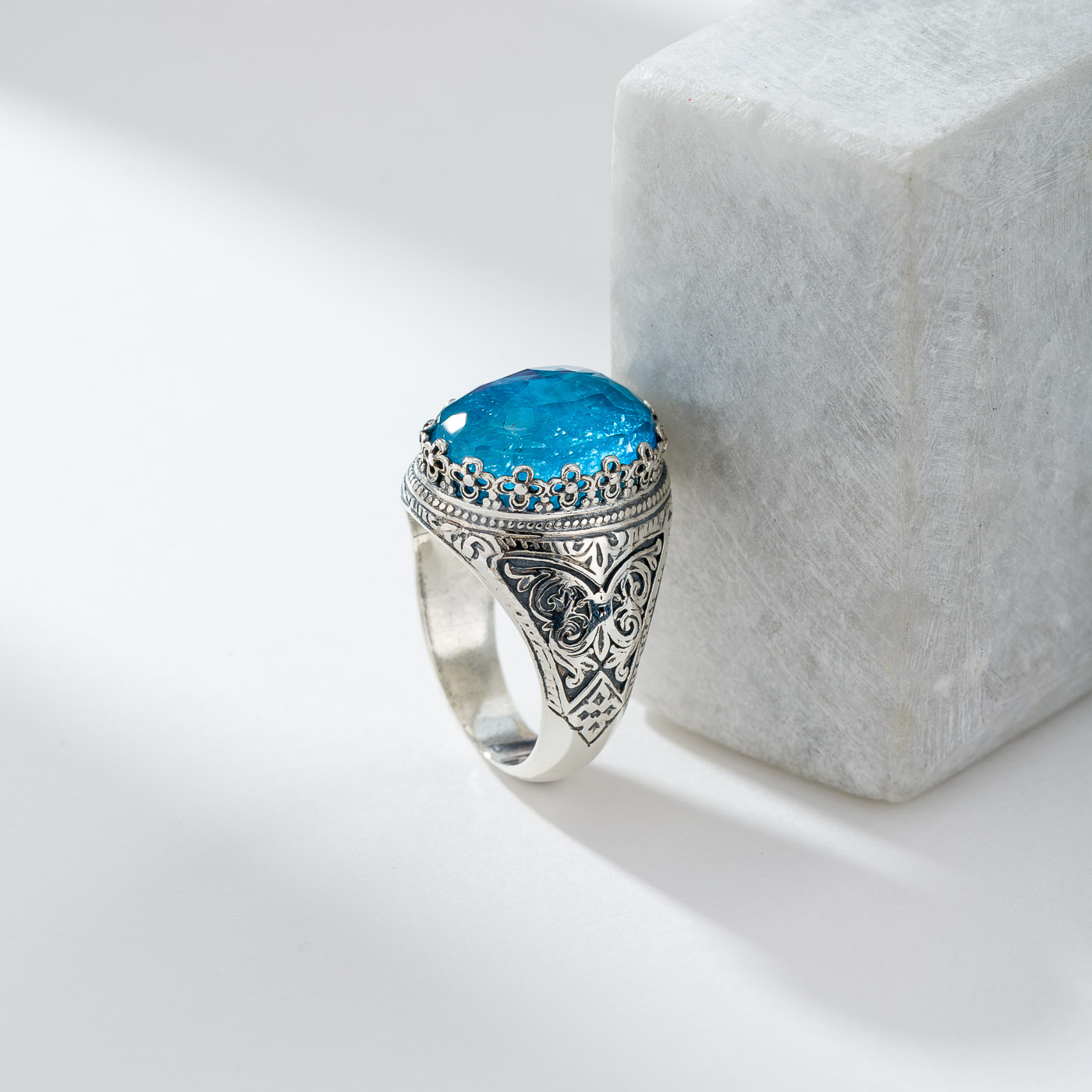 Home / Shop / Women's / Rings / Color / Aegean Colors Oval Ring in sterling silver with Doublet Gemstone