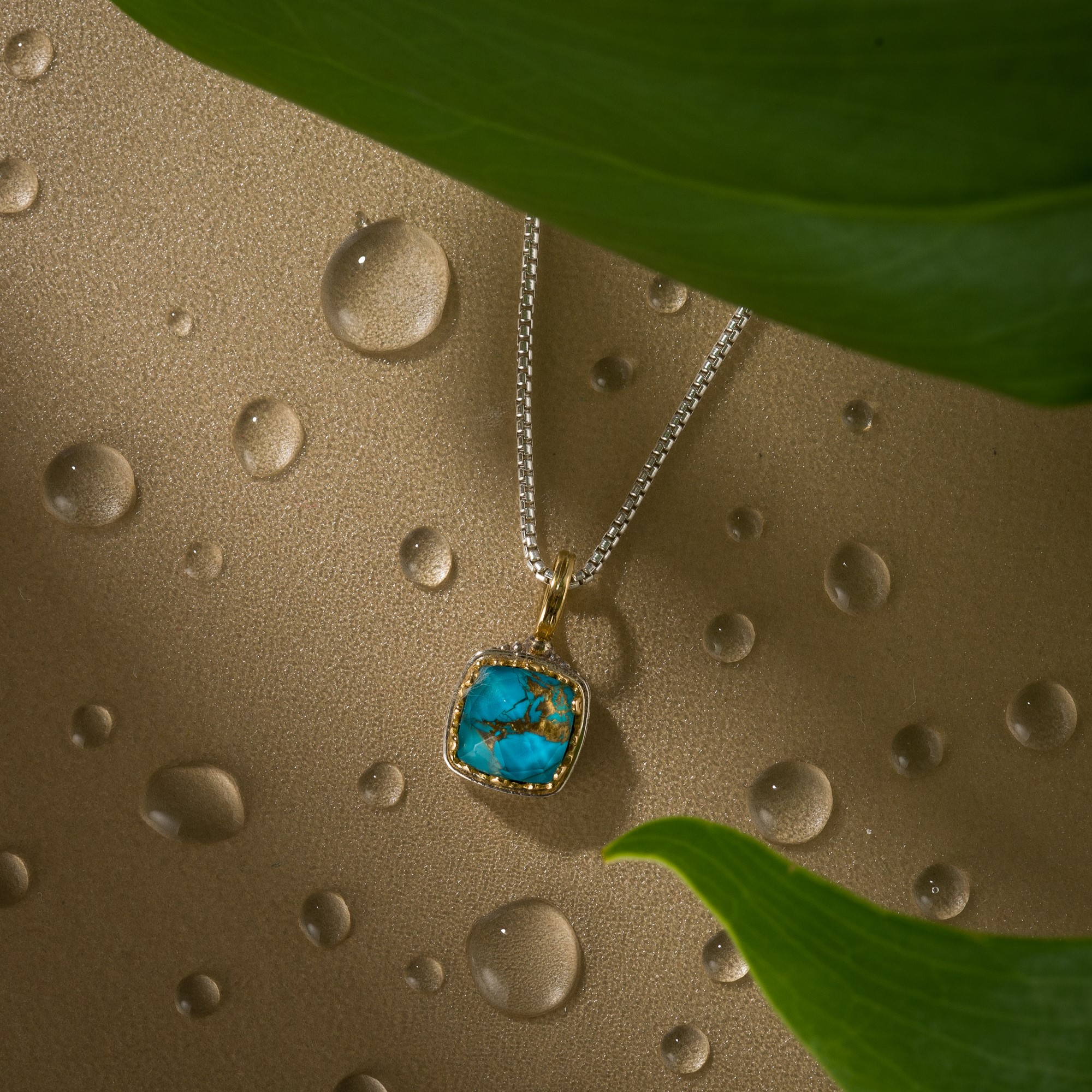 Pendant in 18K solid Yellow Gold and Sterling Silver with doublet stone 8x8mm.