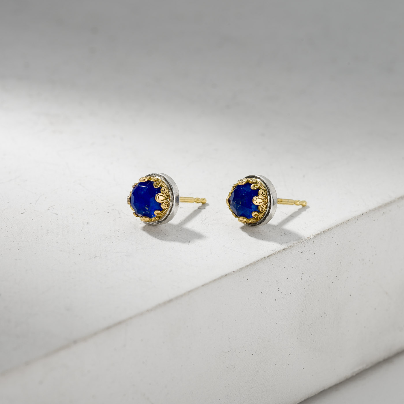 Stud earrings in 18K solid Yellow Gold and sterling silver with doublet stones 6mm.