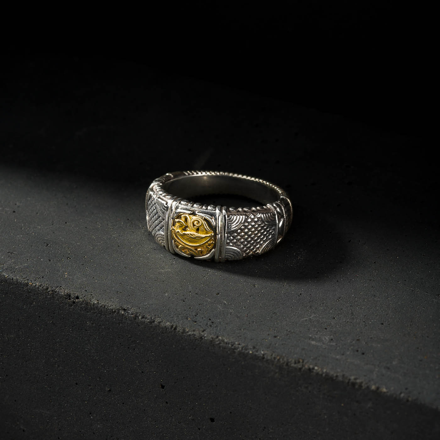 Ring in 18K solid Yellow Gold and Sterling Silver.