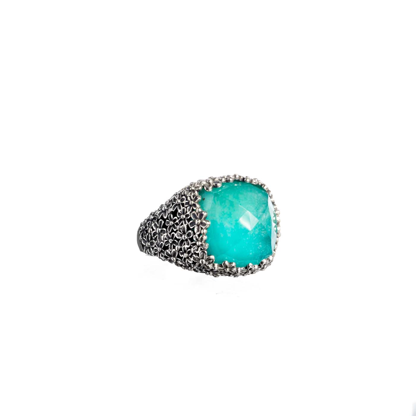 Home / Shop / Women's / Rings / Color / Wild Flower Anthemis square Ring in Sterling Silver with Doublet Gemstone