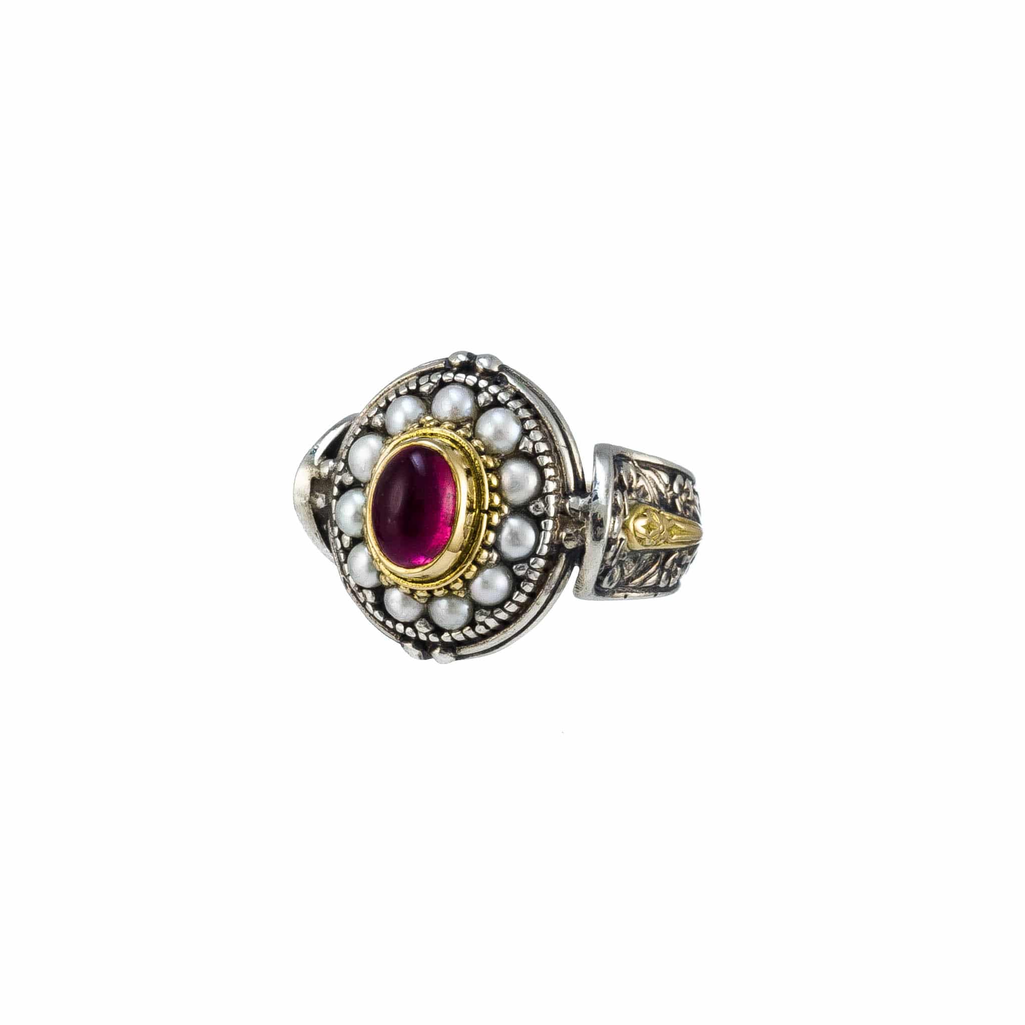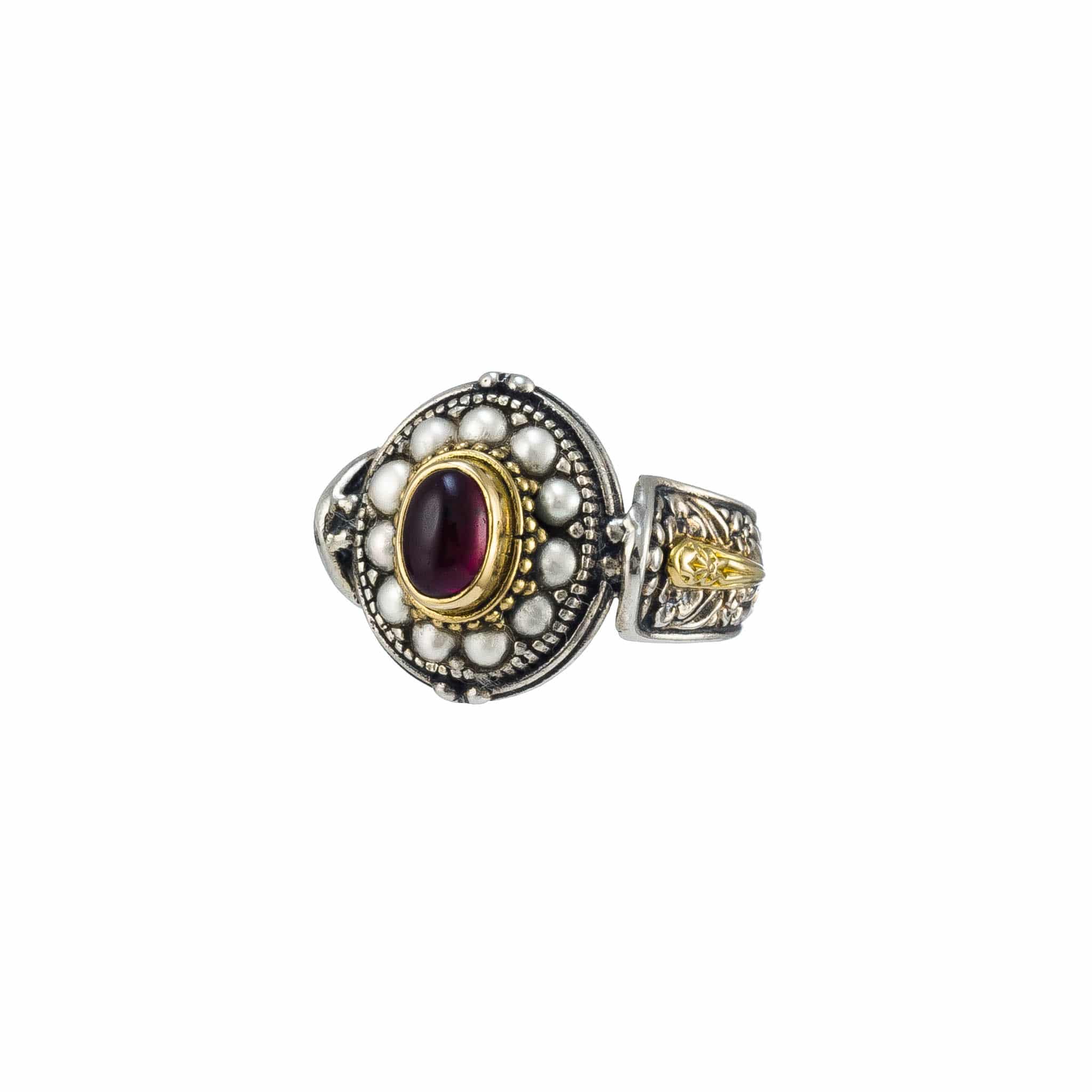 Earrings in 18K solid yellow Gold, sterling silver, semi precious stones 5x7mm and freshwater pearls.