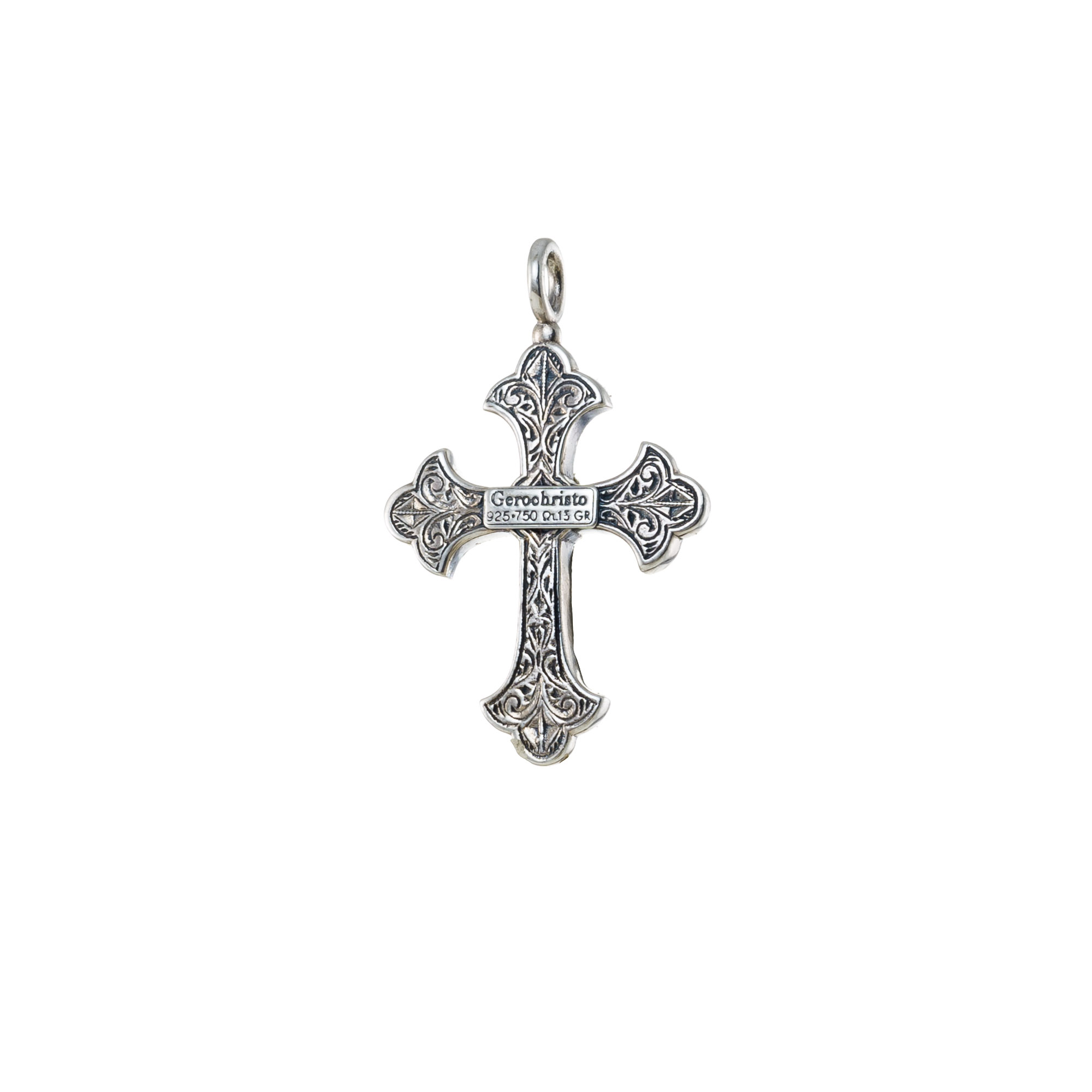 Cross in sterling silver with 18K solid Yellow Gold details and a semi precious stone or freshwater pearl.