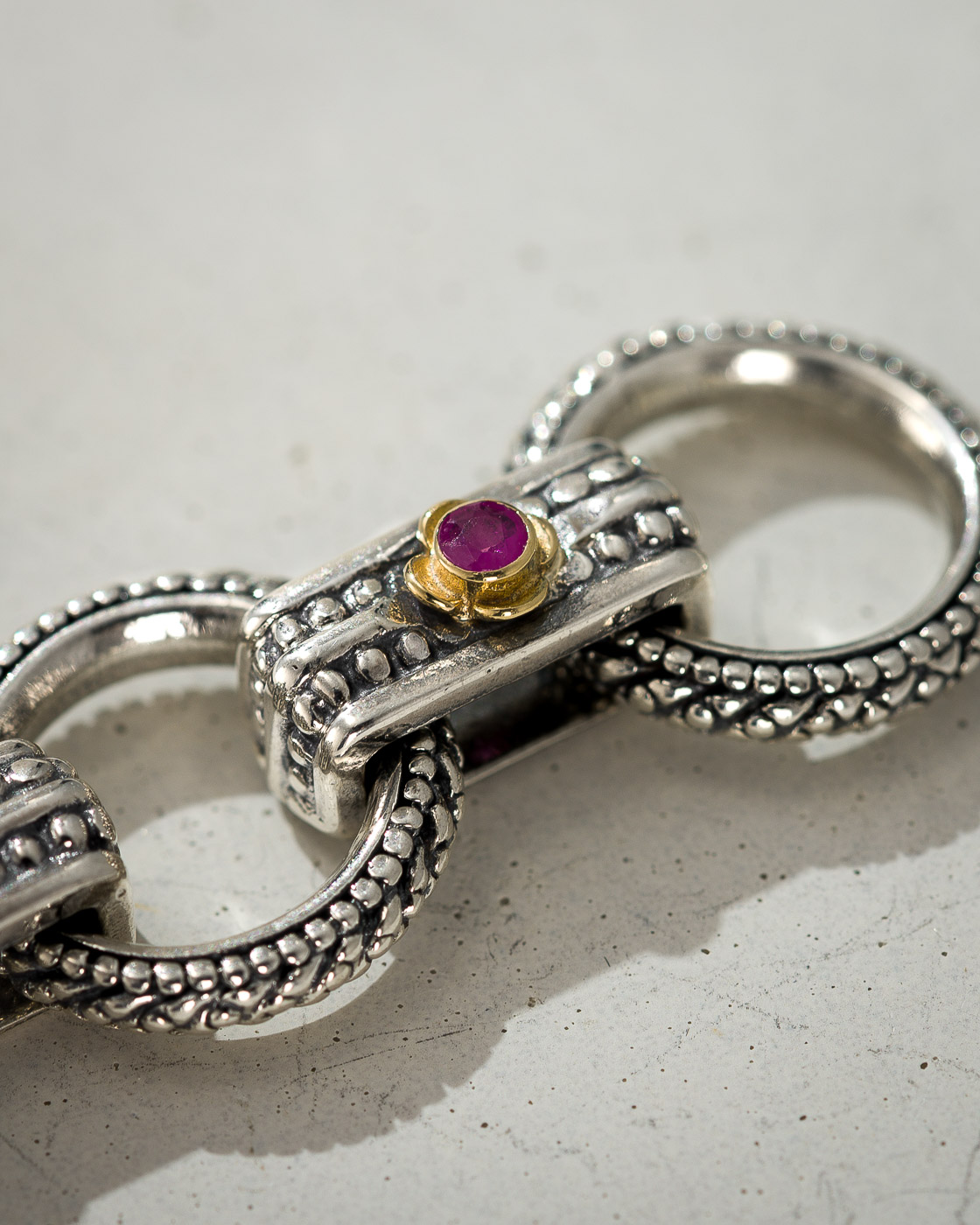Home / Shop / Women's / Bracelets / Link & Chain / Bracelet in 18K Gold and Sterling Silver with rubies