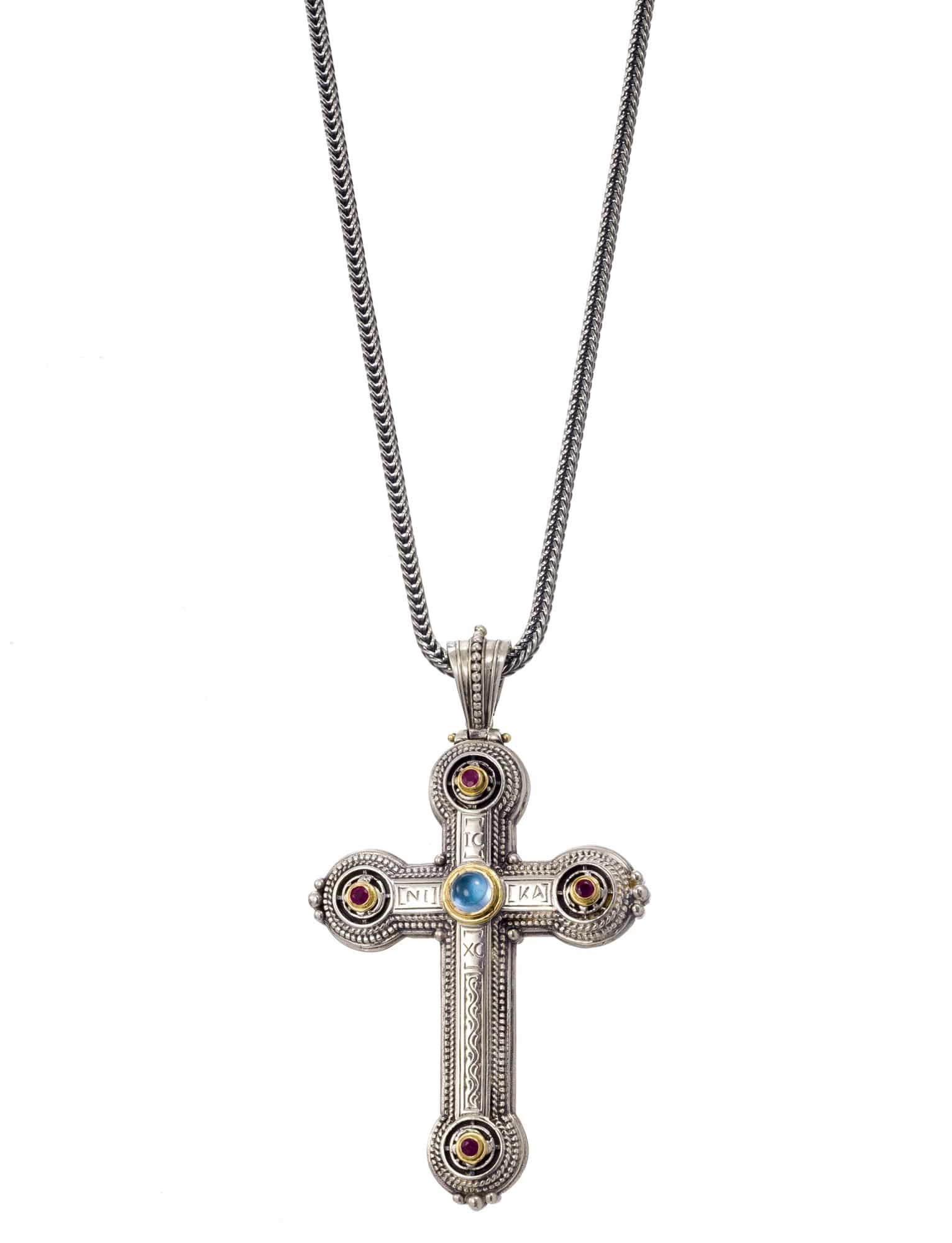Home / Shop / Women's / Crosses / Byzantine cross in 18K Gold and Sterling Silver with Gemstones