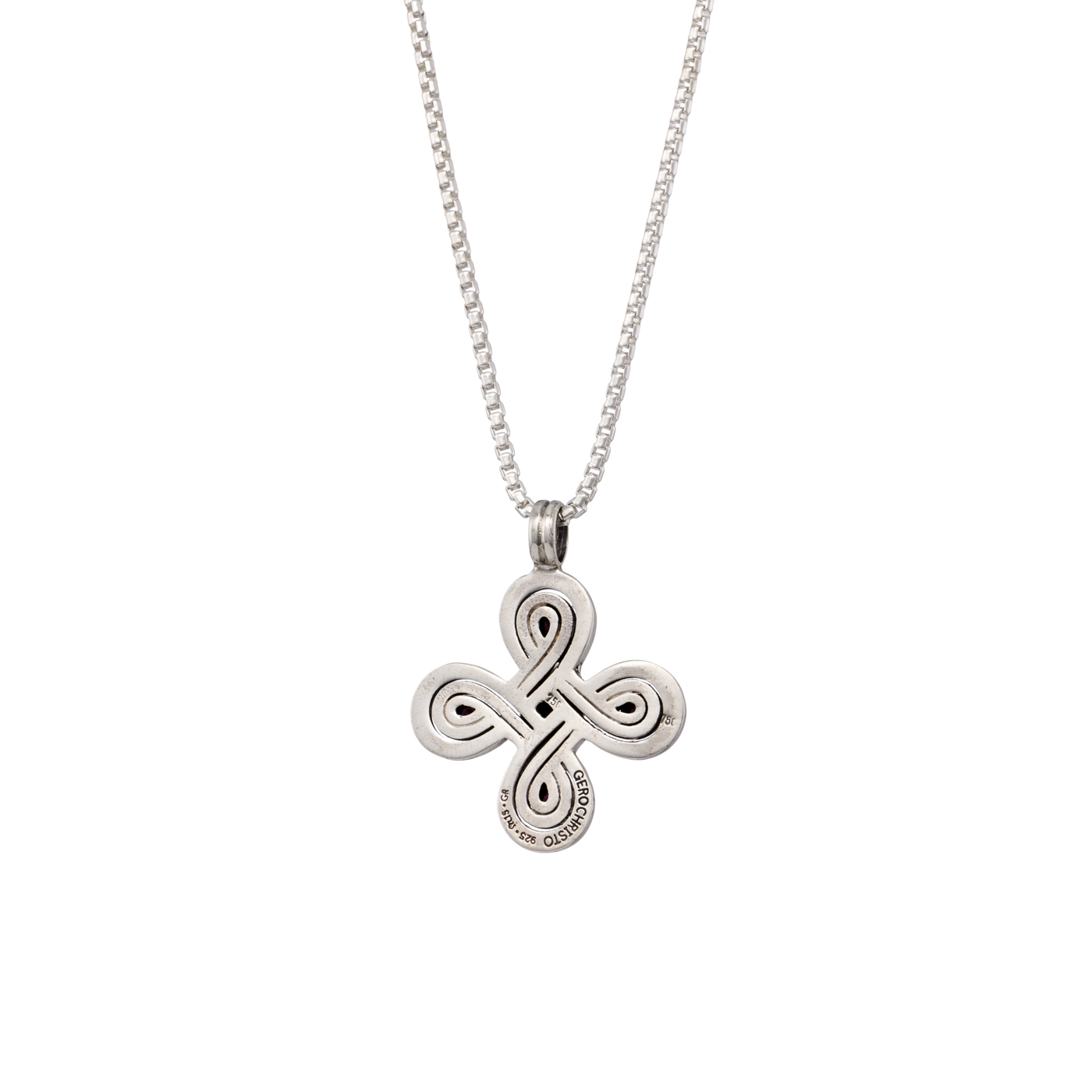 Home / Shop / Women's / Infinity cross in 18K Gold, sterling silver, rubies and aquamarine