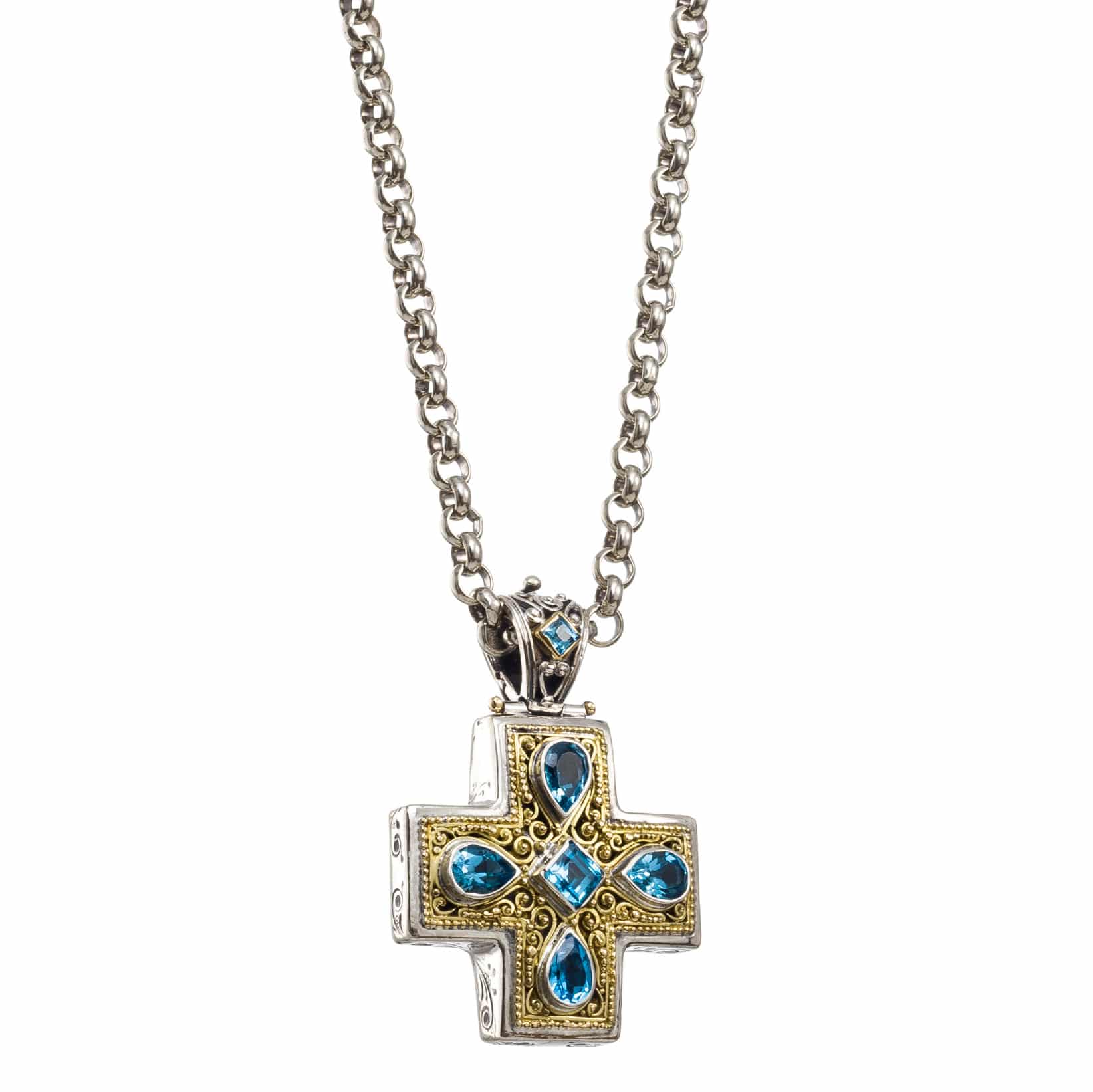 Byzantine cross in 18K Solid Gold, Sterling silver and semi precious stones