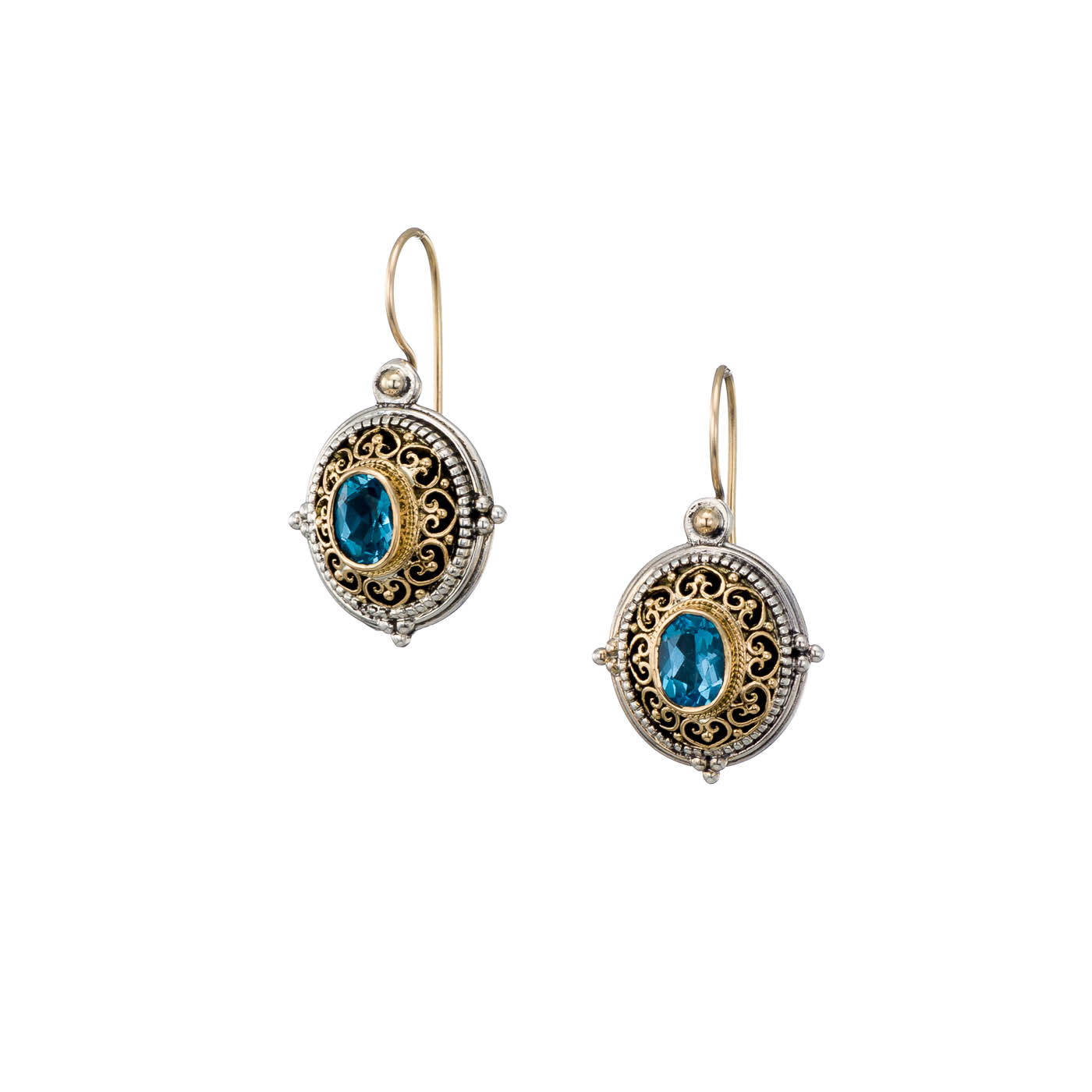 Earrings in 18K solid Yellow Gold, sterling silver and semi precious stones 5x7mm oval.
