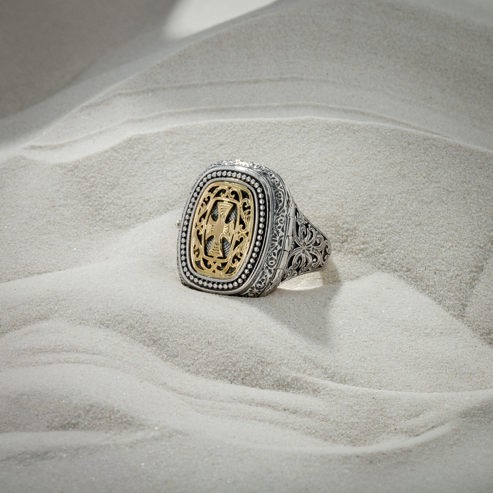 Home / Shop / Men's / Rings / Byzantine Locket Ring in 18K Gold and Sterling Silver