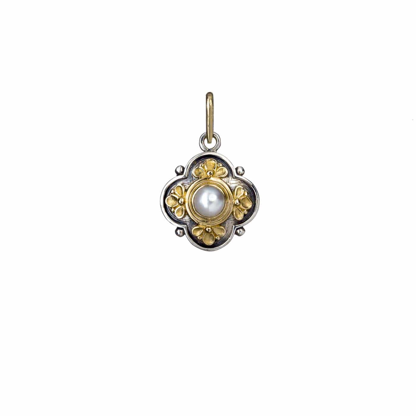 Pendant in 18K solid Yellow Gold, sterling silver and semi precious stone.