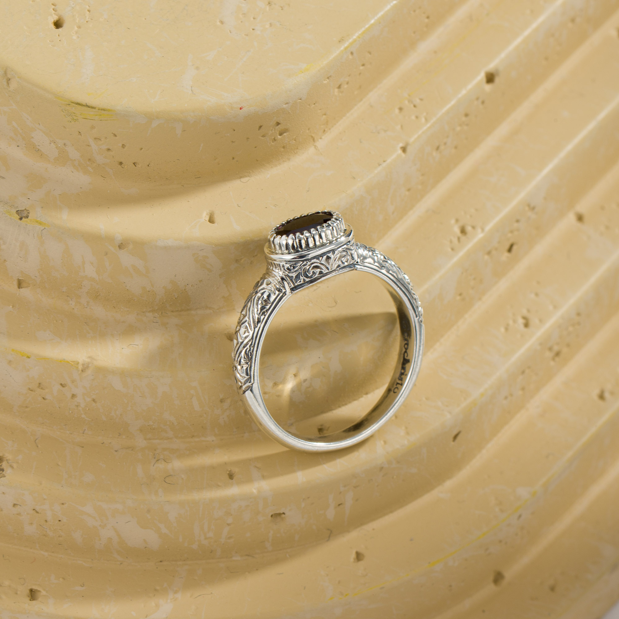 Ring in 18K Gold, sterling silver with pink tourmaline 5x7mm oval.