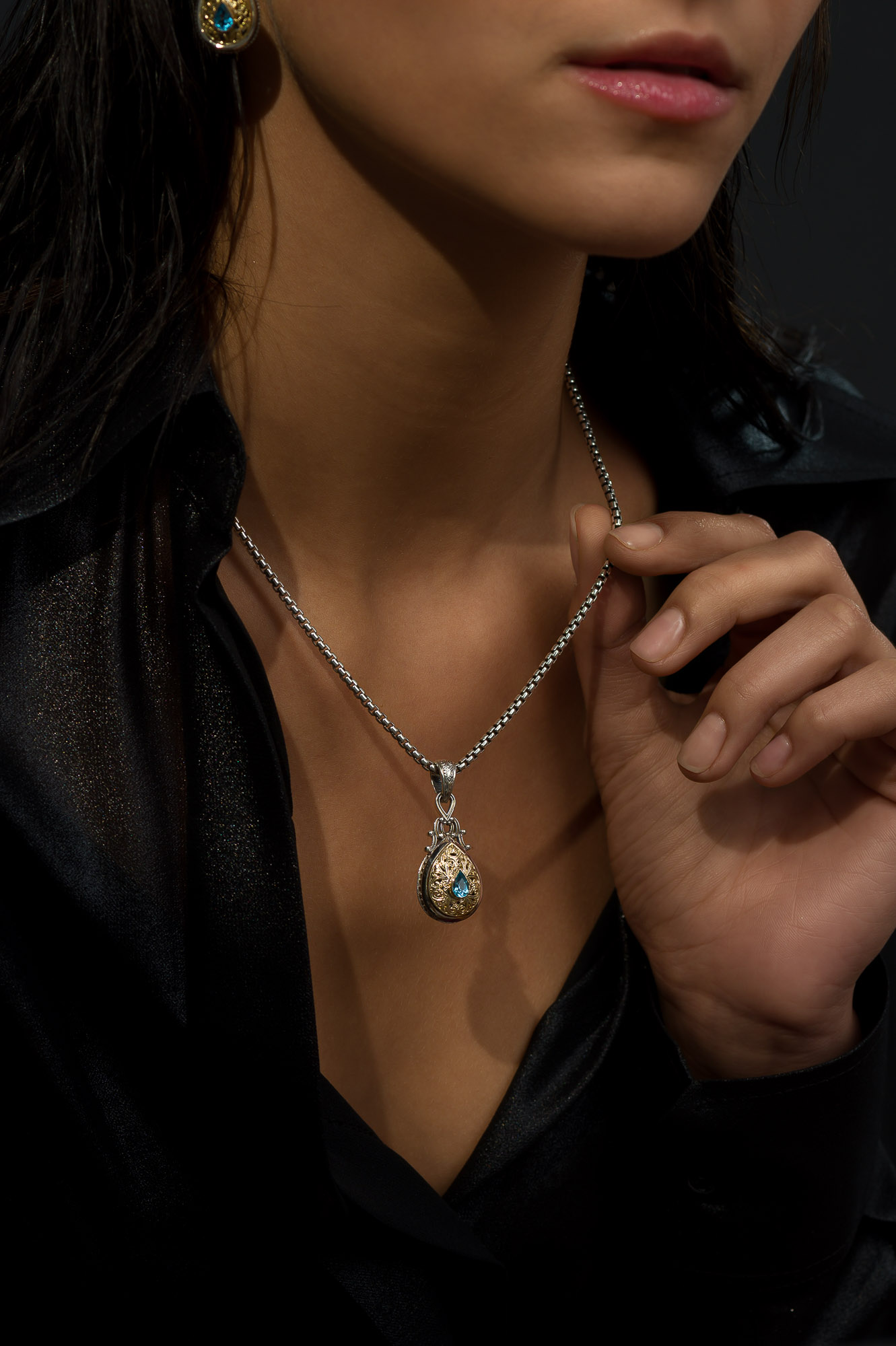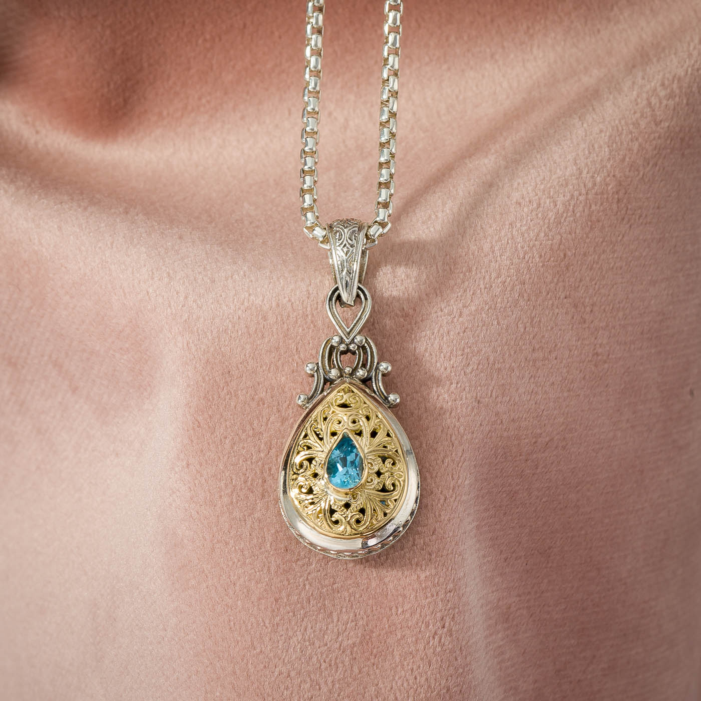 Home / Shop / Women's / Crosses / Byzantine Cross in 18K Gold and Sterling Silver with Semi Precious Stone