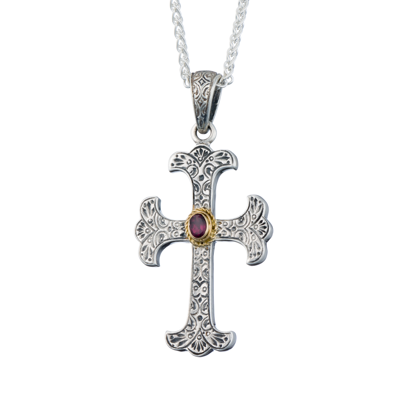 Home / Shop / Men's / Byzantine Cross in Sterling Silver and details in 18K Gold with semi precious stone