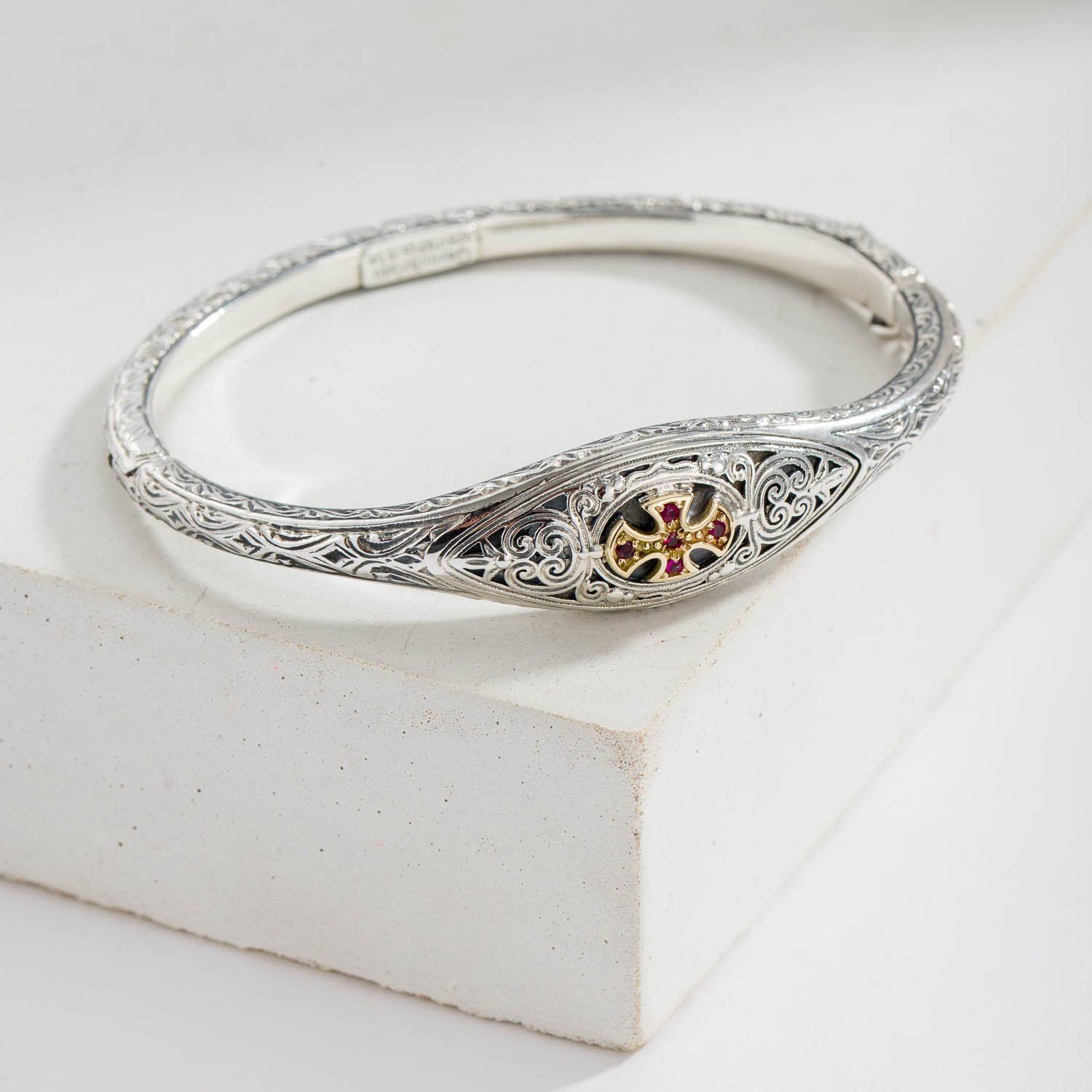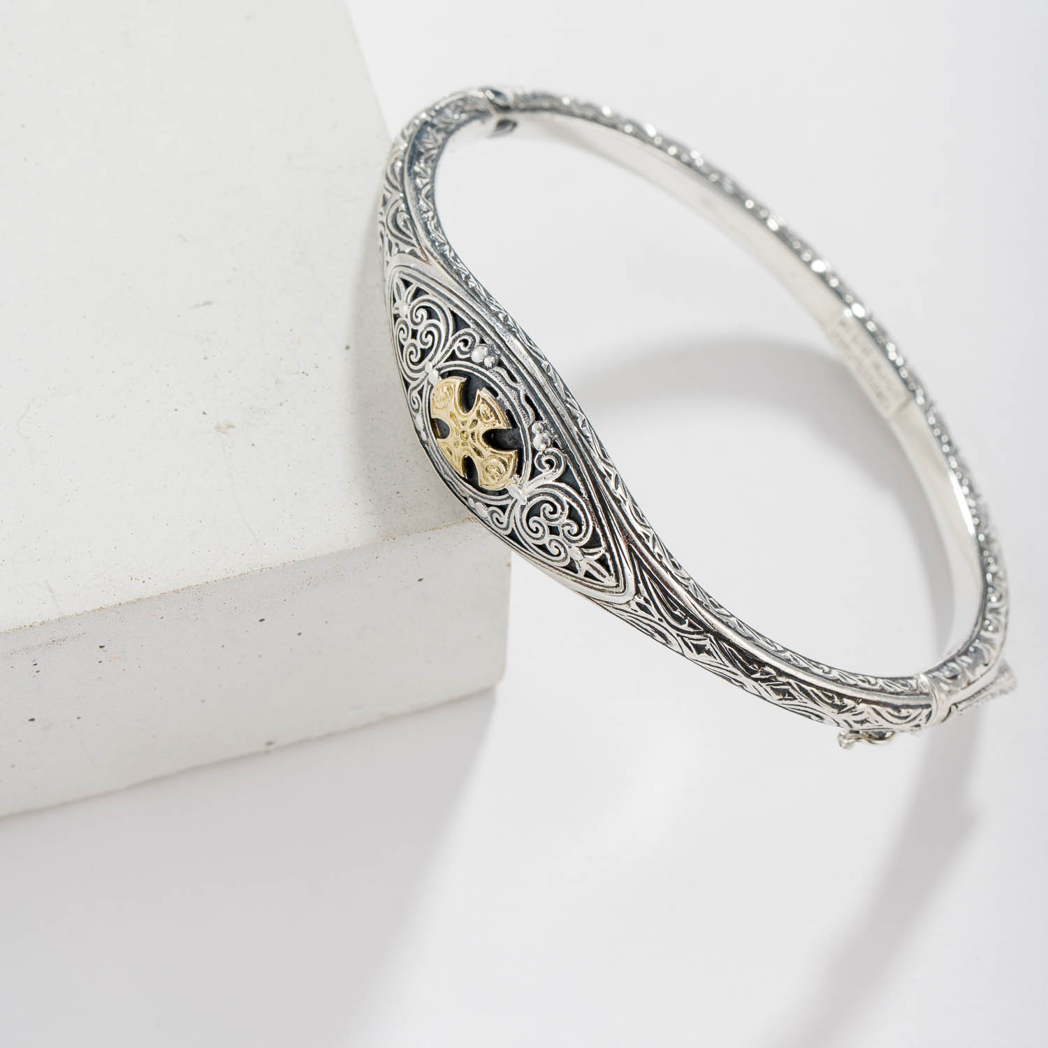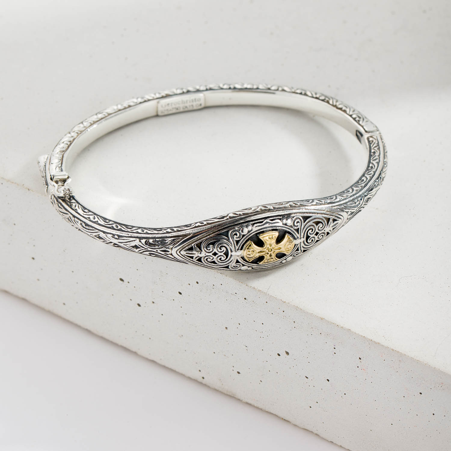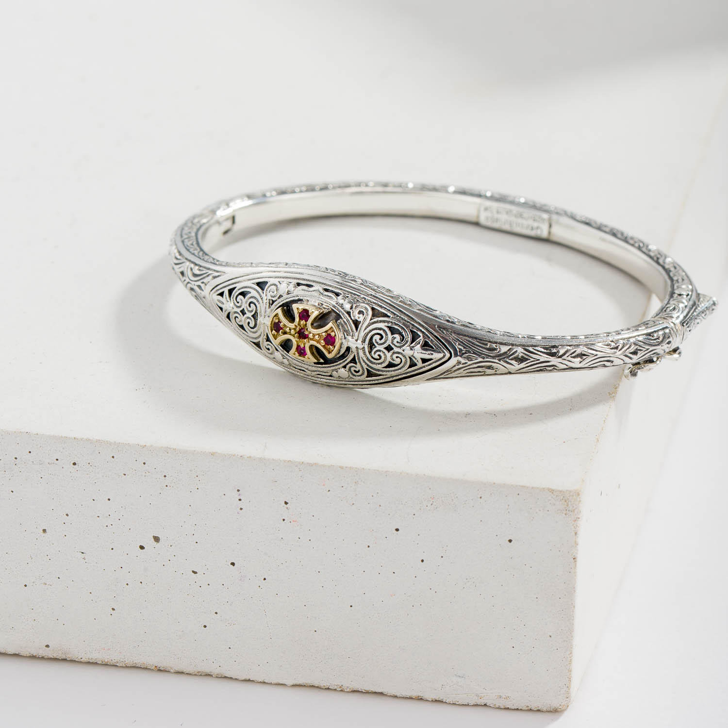 Home / Shop / Women's / Crosses / Cyclades cross in sterling silver with 18K Gold details and semi precious stone