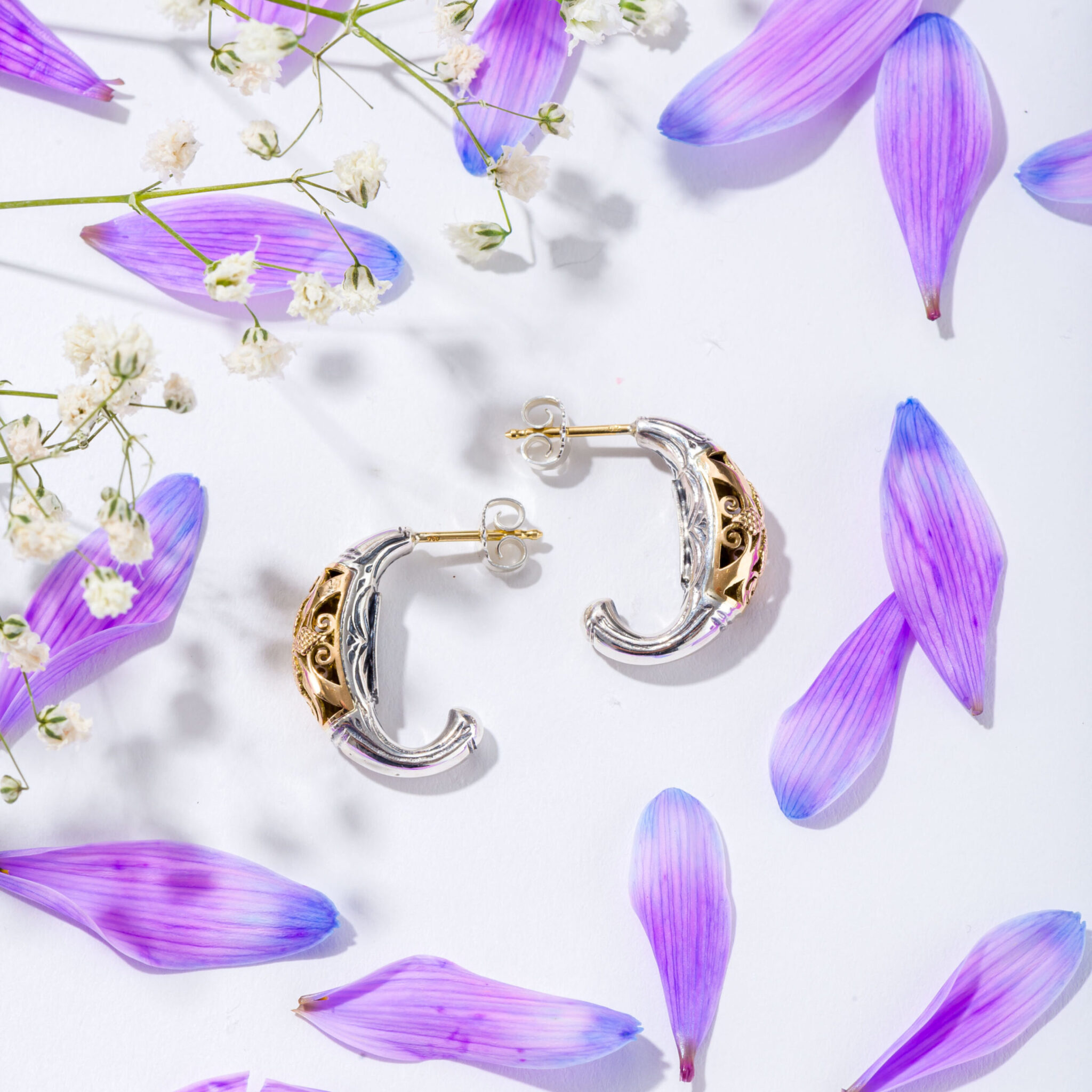 Earrings in 18K solid Yellow Gold and sterling silver.