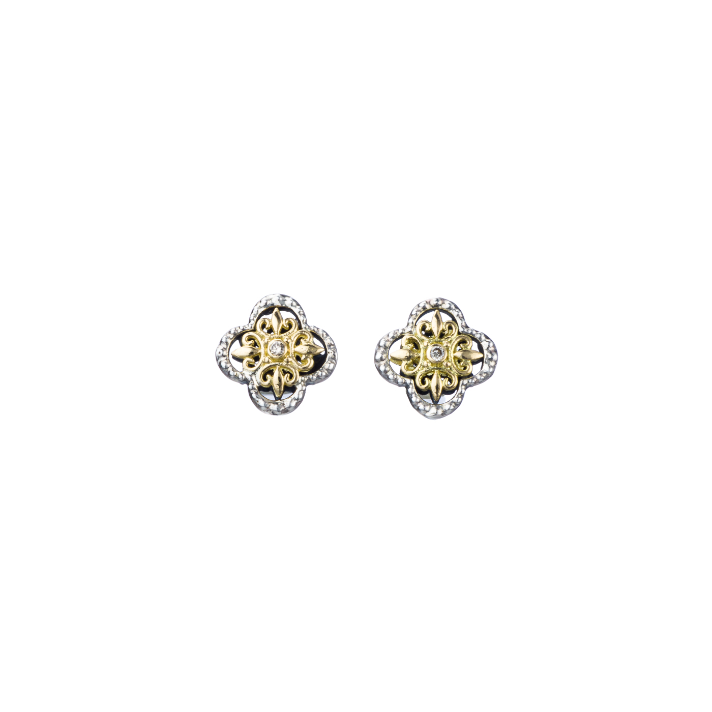 Home / Shop / Women's / Cross flower Stud earrings in 18K Gold and sterling silver with precious stones