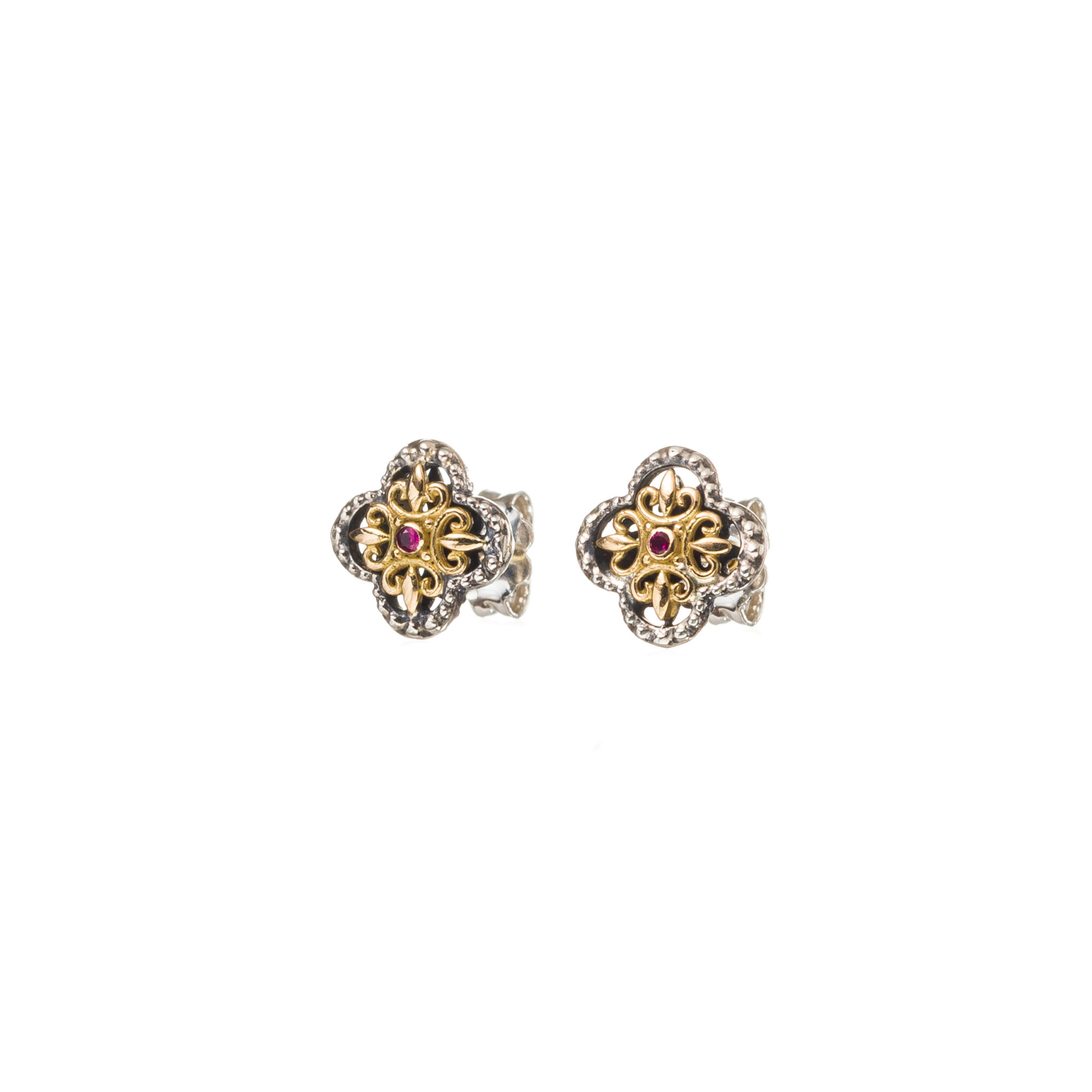 Stud earrings in 18K solid Yellow Gold and sterling silver with precious stones rubies or diamonds.