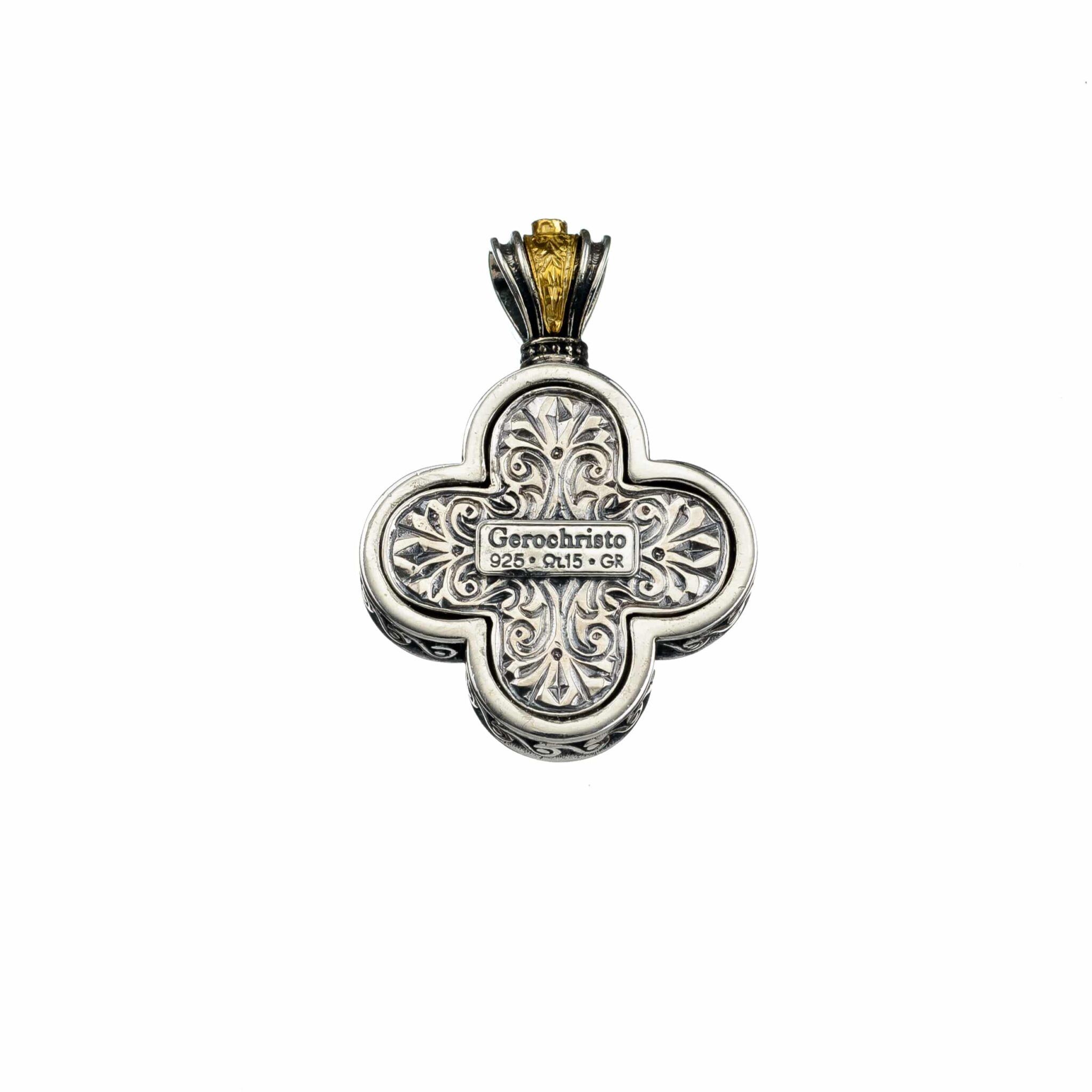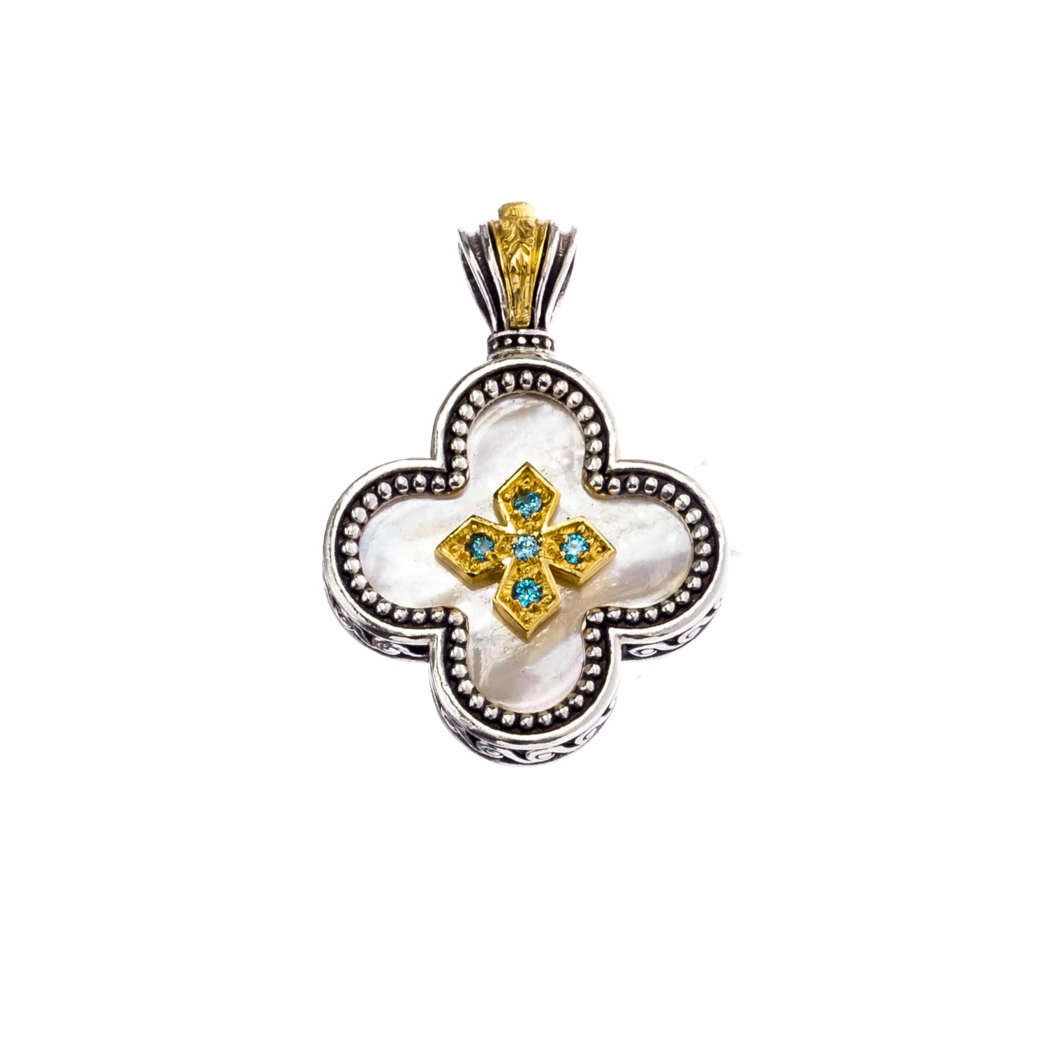 Cross in sterling silver with Gold plated parts mother of pearl and cubic zirconia.