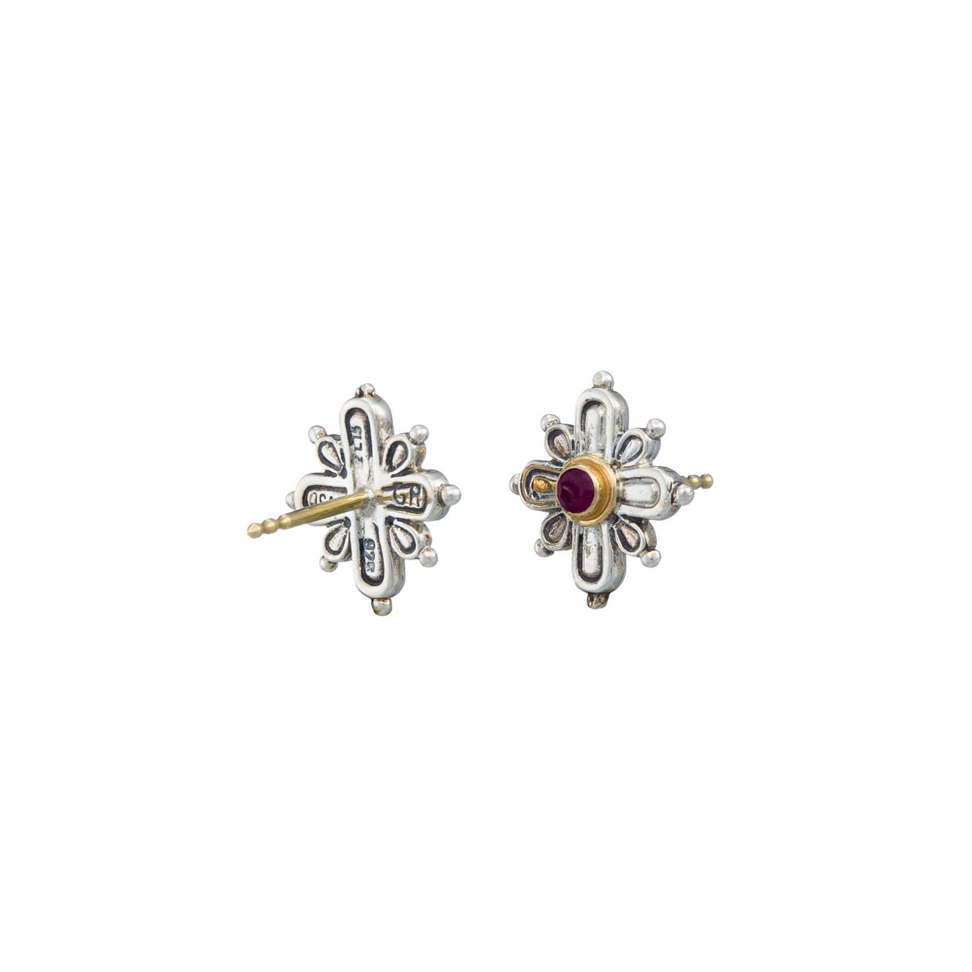 Home / Shop / Women's / Earrings / Stud / Cross Stud Earrings in 18K Gold and Sterling Silver with ruby