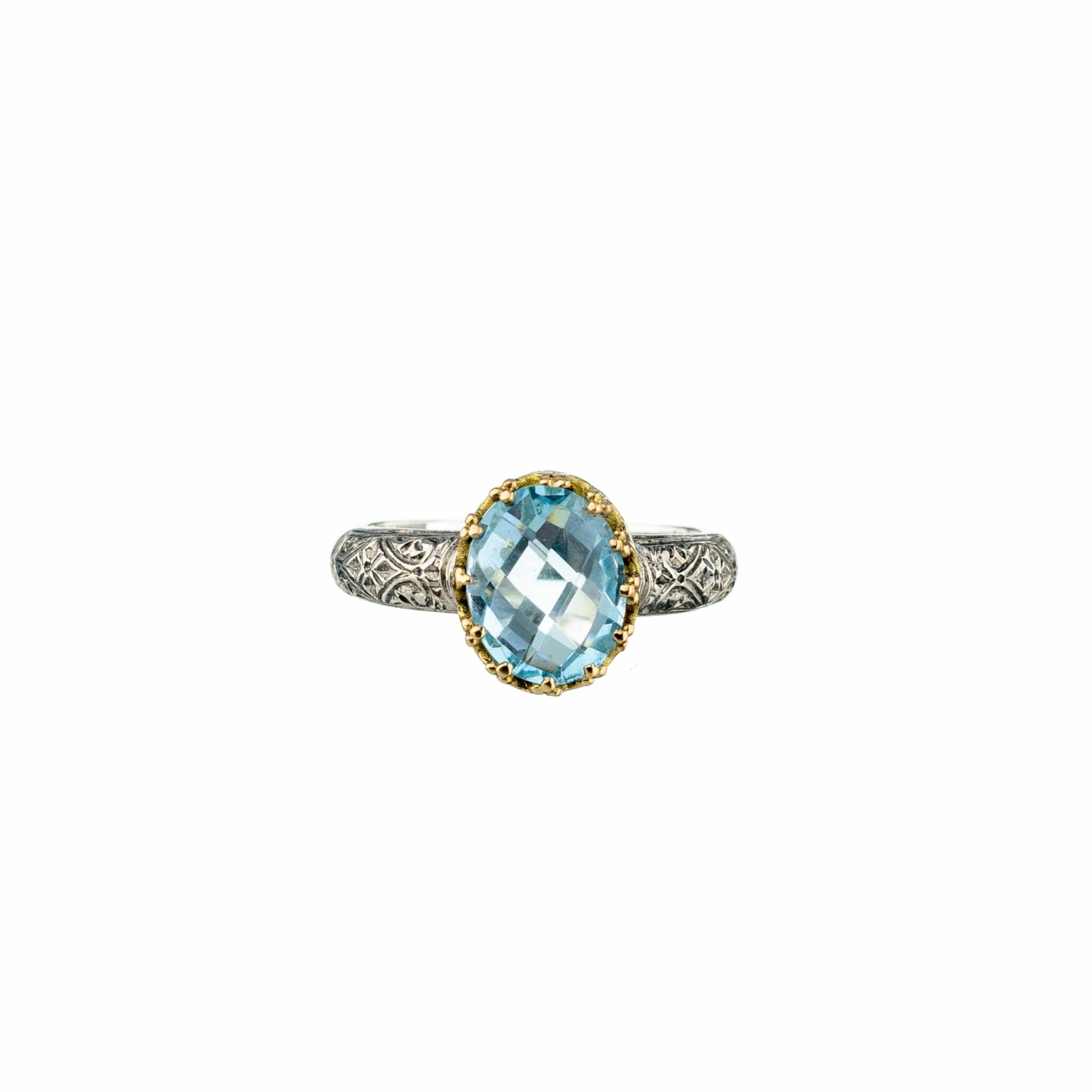 Ring in 18K solid Yellow Gold and sterling silver with Amethyst 8x10mm.