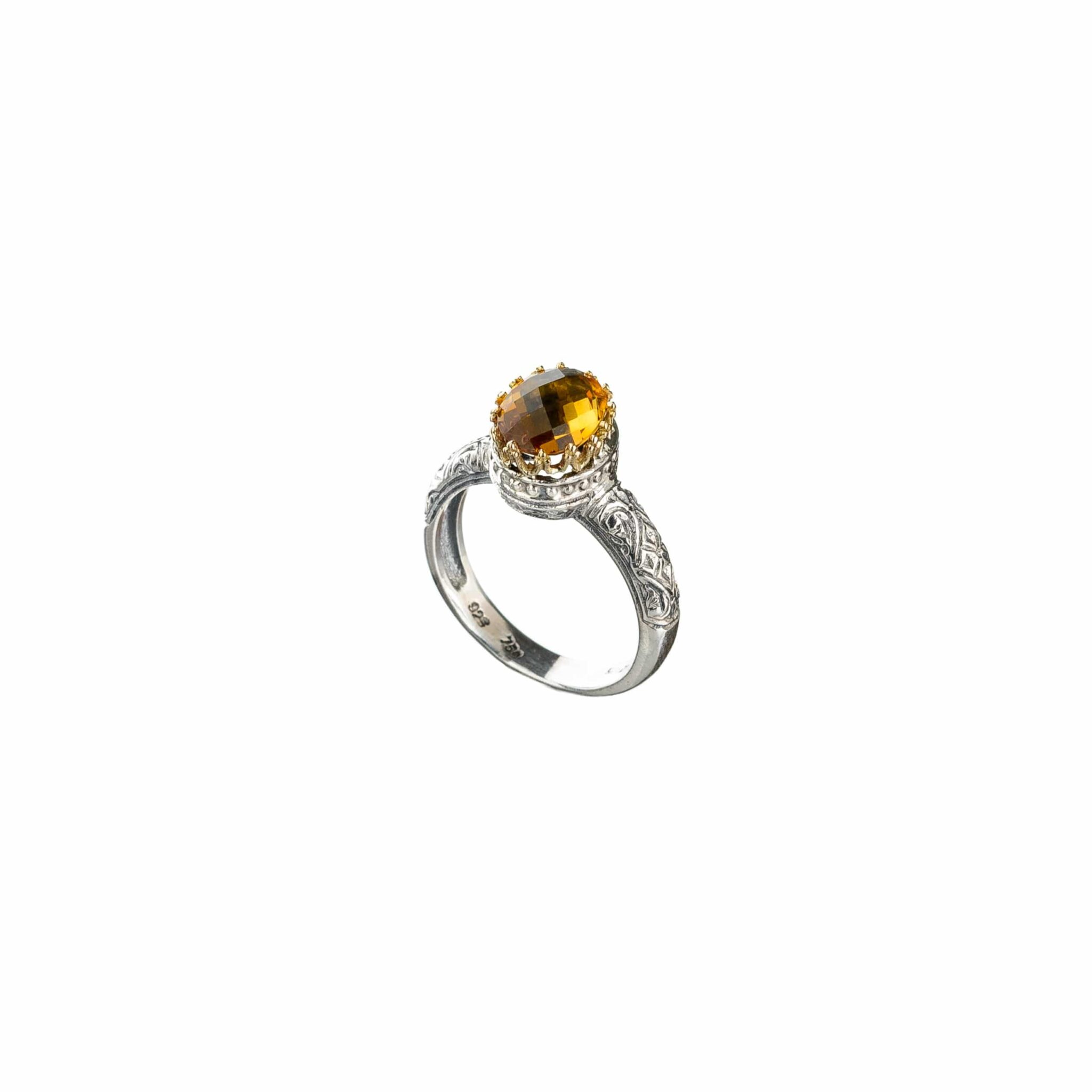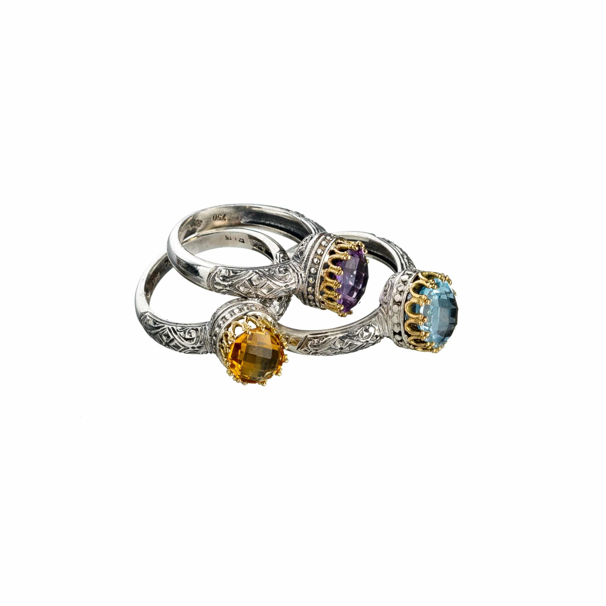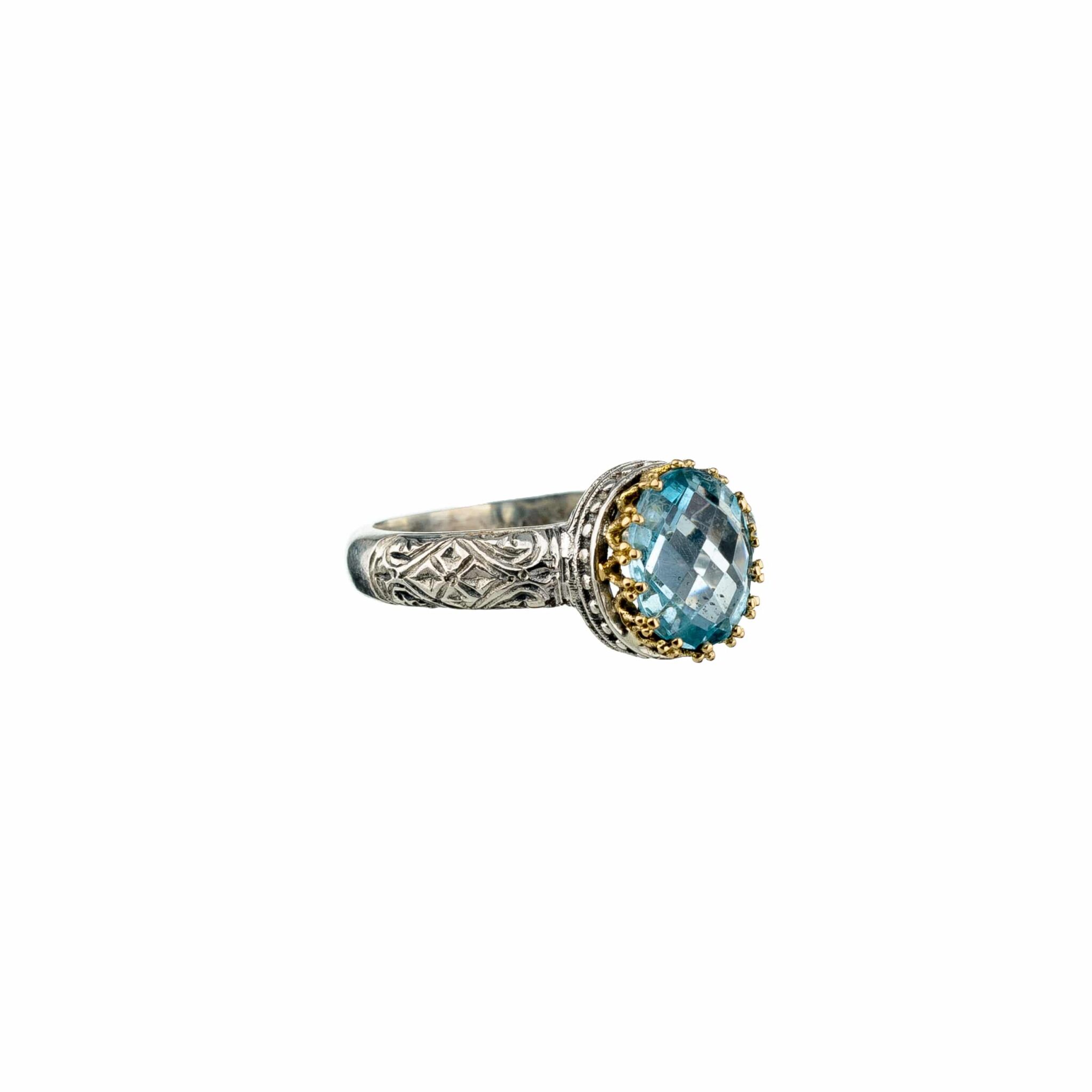 Ring in 18K solid Yellow Gold and sterling silver with Blue topaz 7x9mm