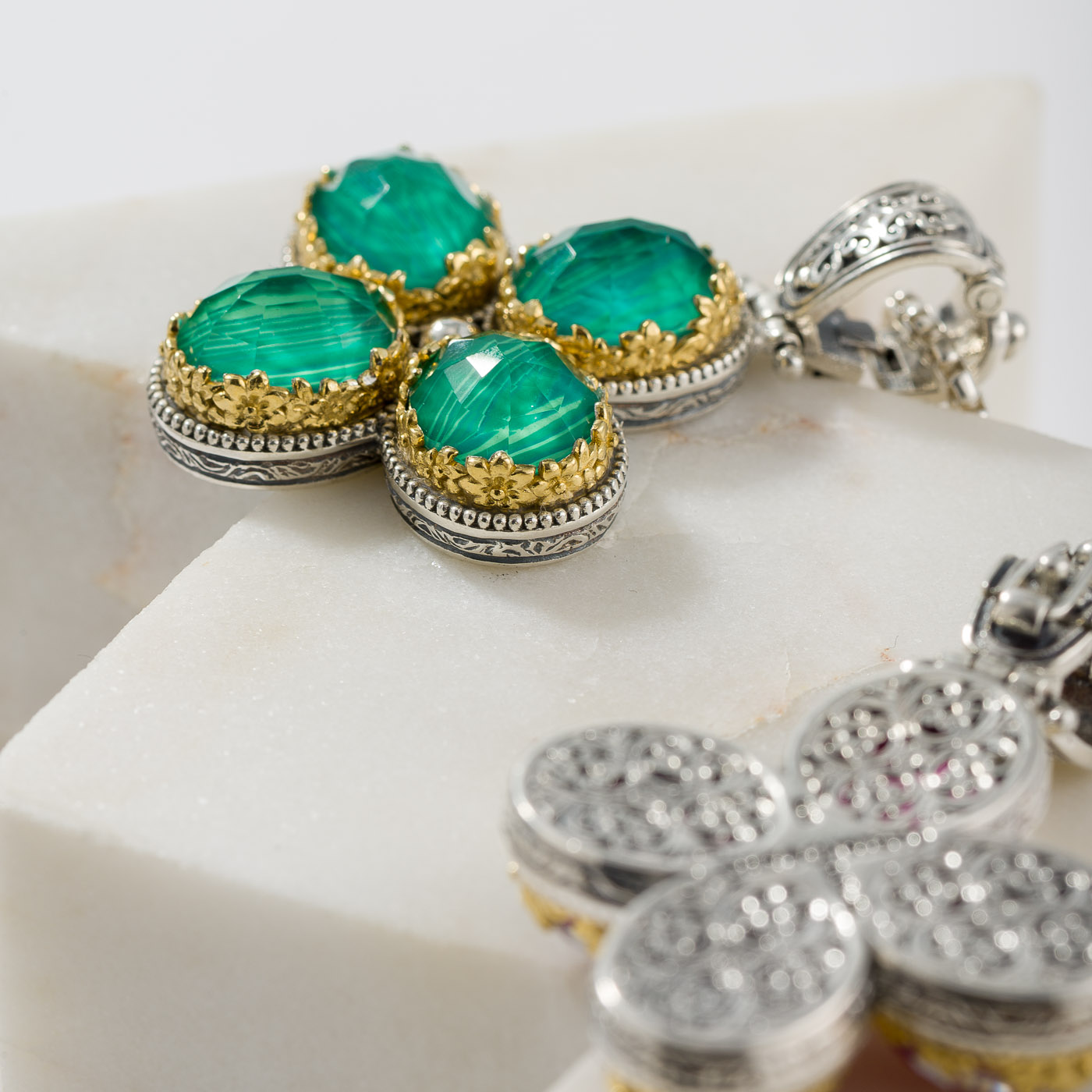 Home / Shop / Women's / Crosses / Dione Cross in Sterling Silver with Gold Plated Parts and Doublet Stones