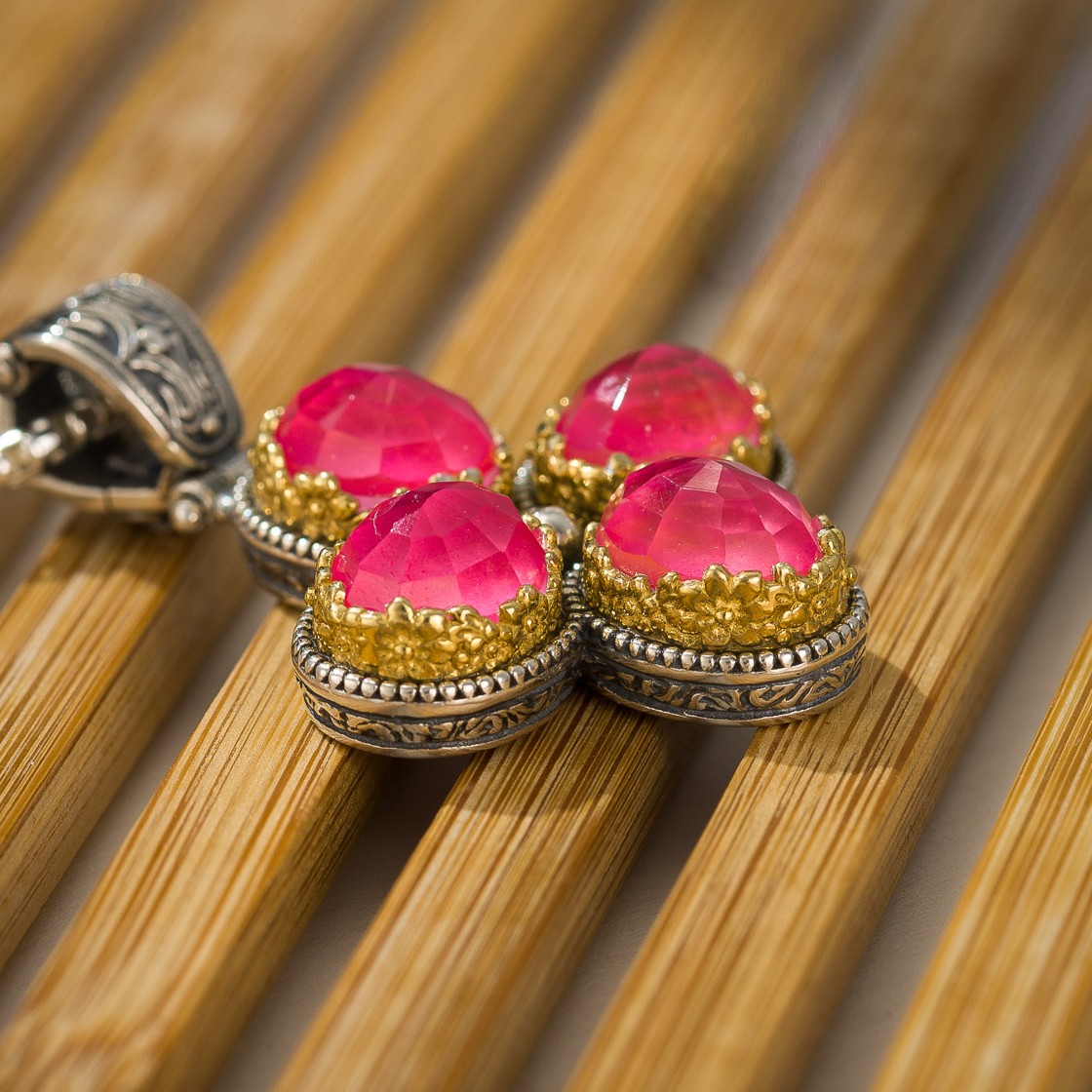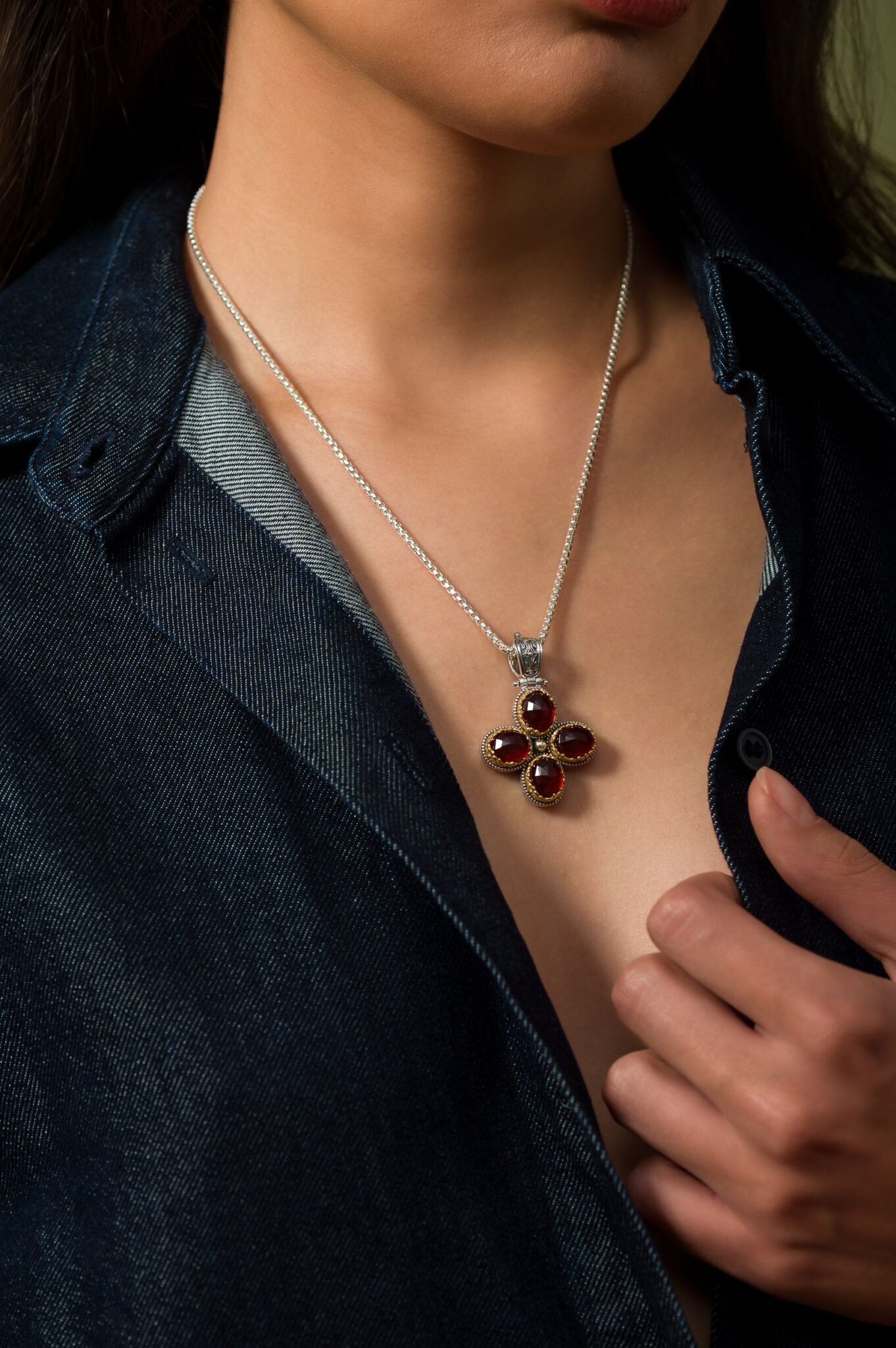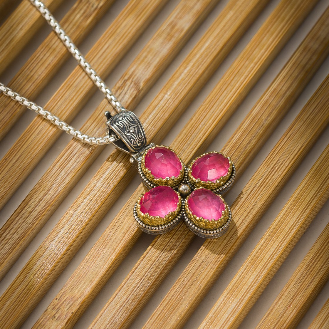 Cross in Sterling Silver with Gold Plated Parts and Doublet Stones 8x10mm.