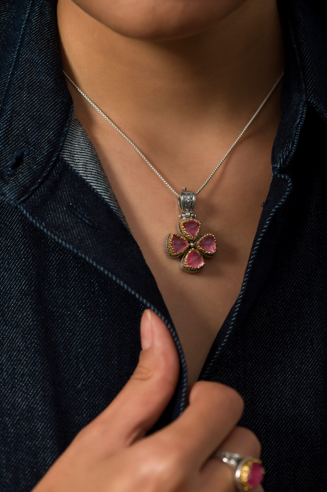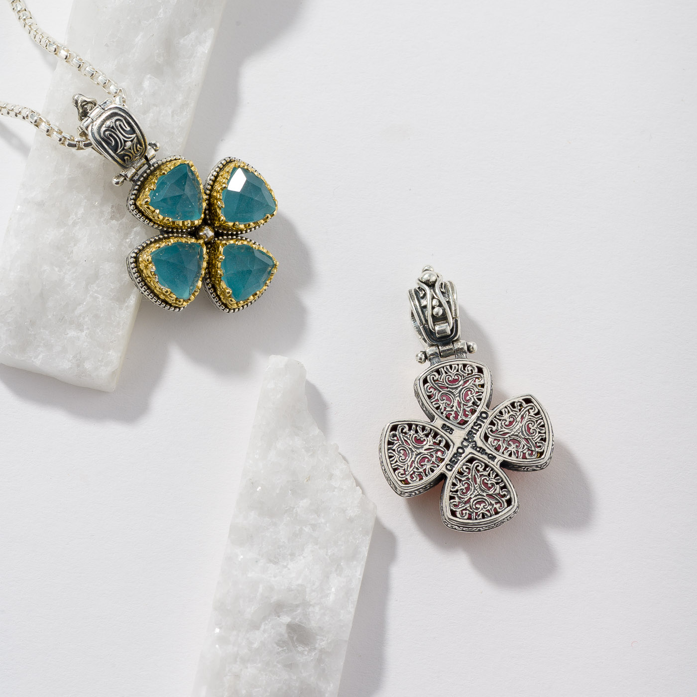 Cross in Sterling Silver with Gold Plated Parts and Doublet Stones 8x8mm.