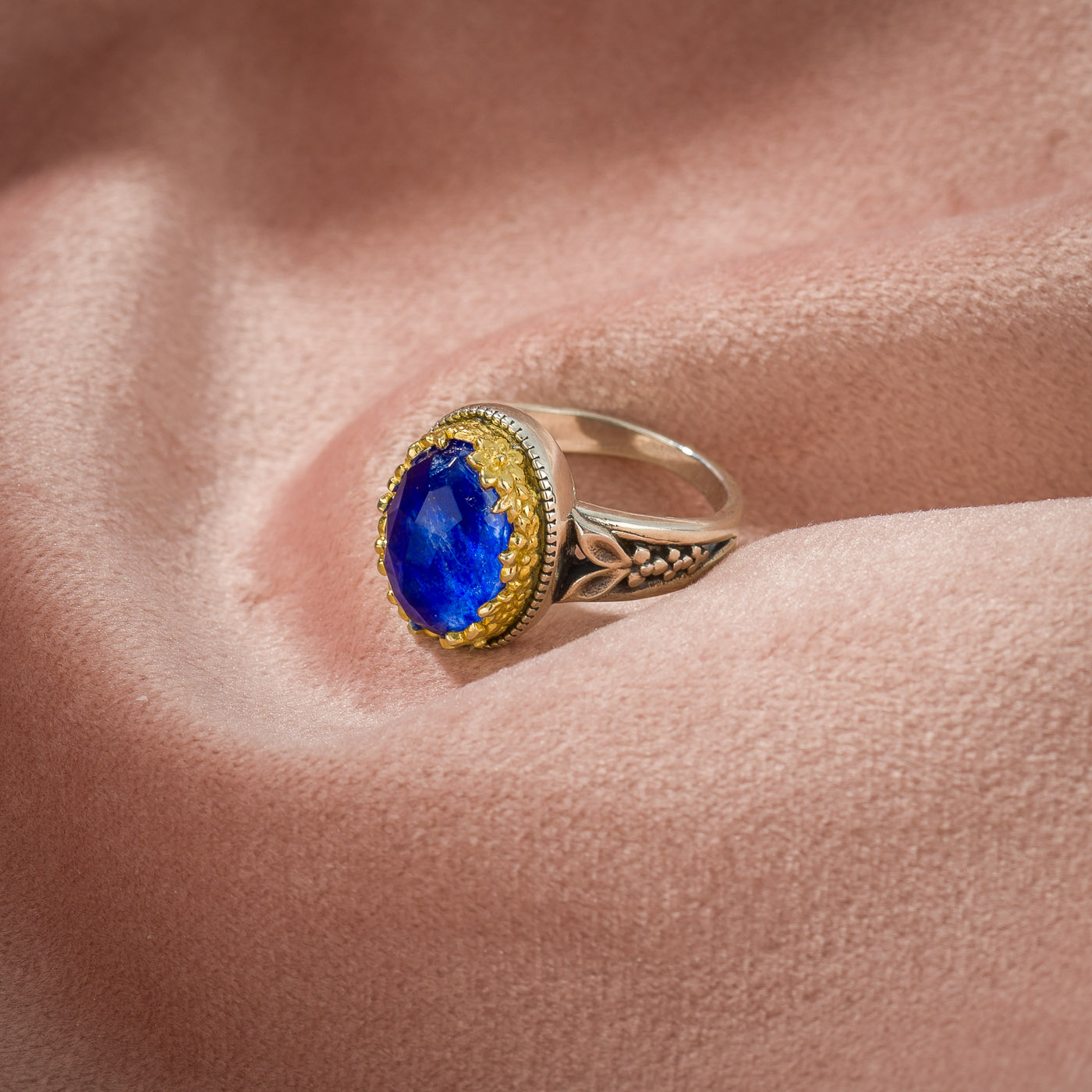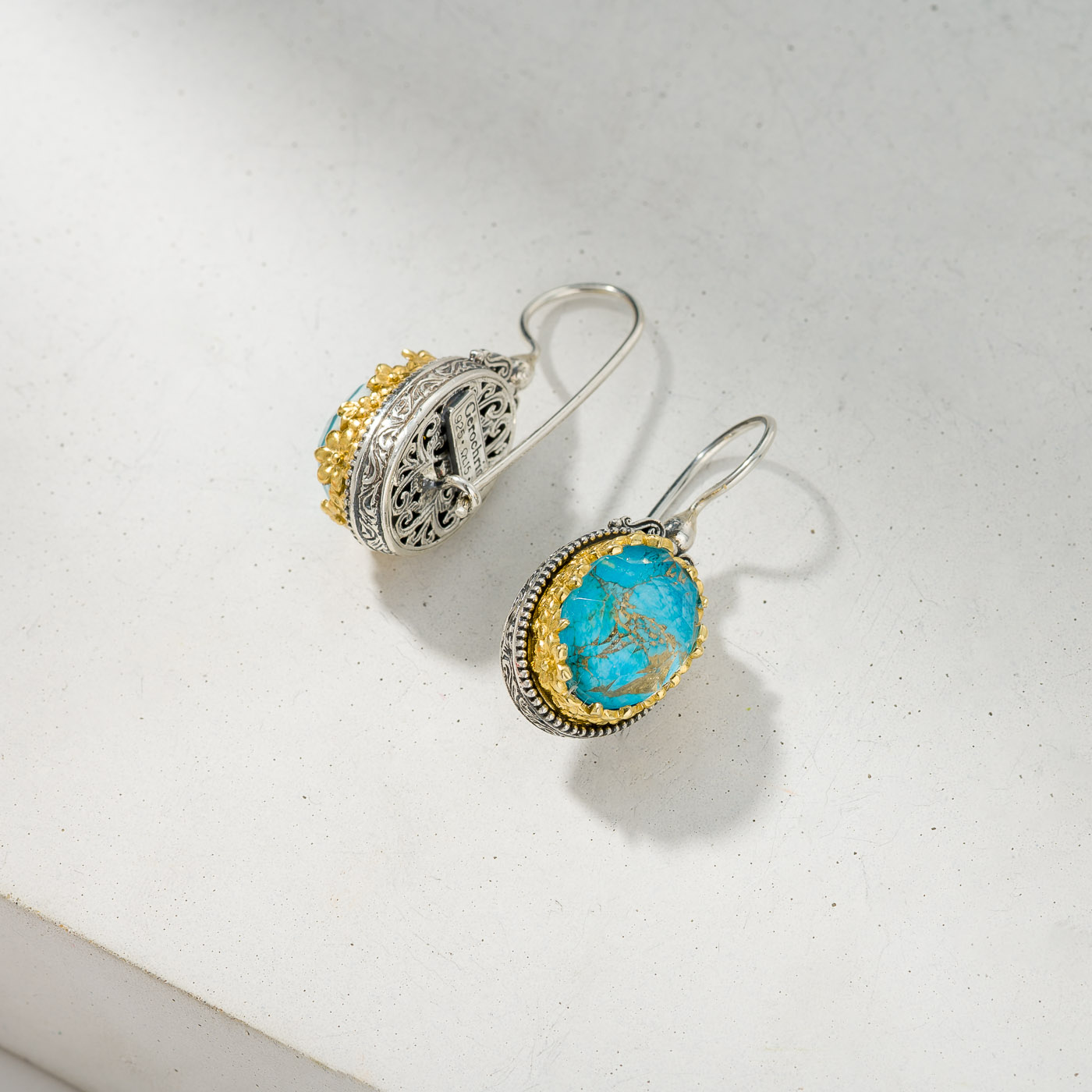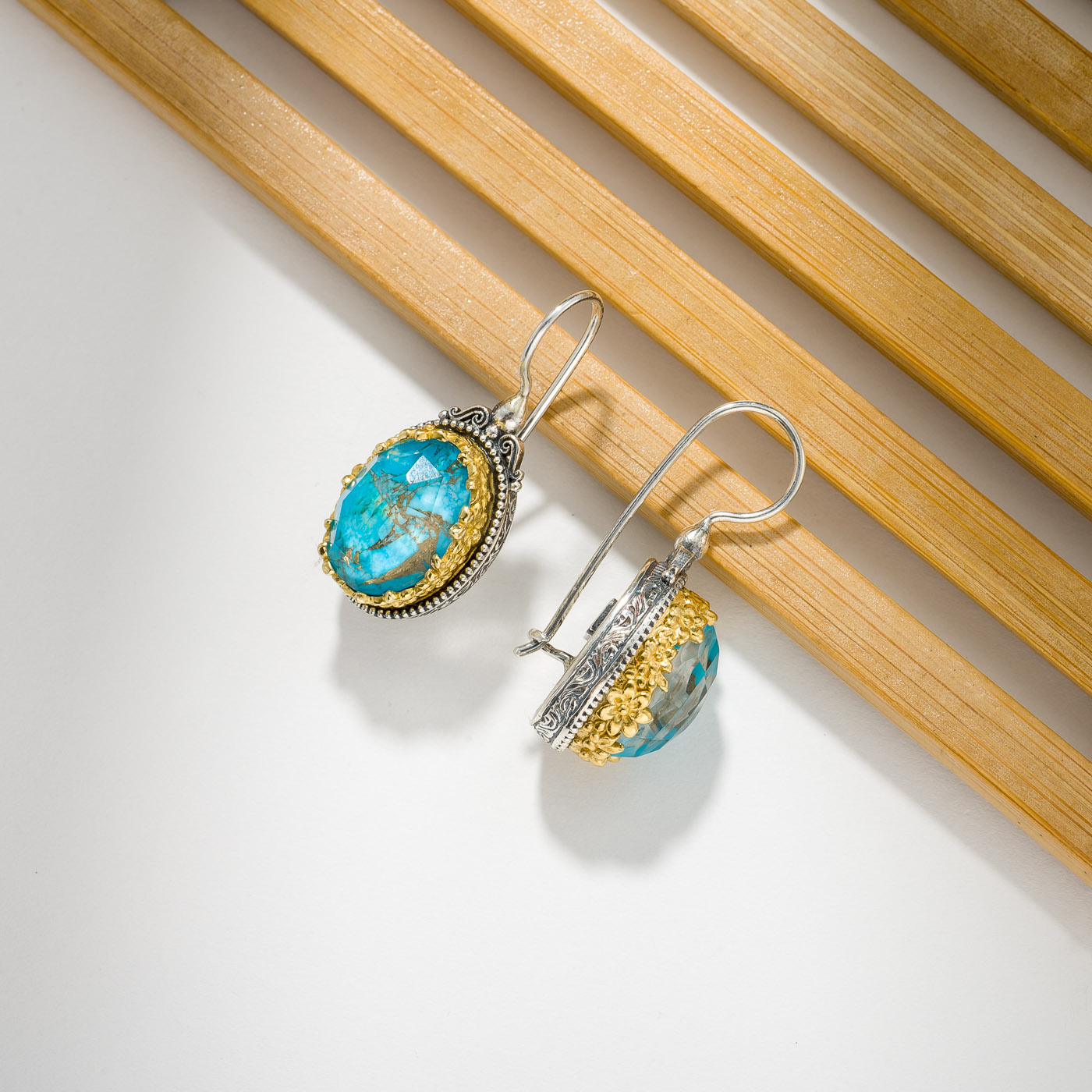 Earrings in sterling silver with Gold plated parts and doublet stones 10x14mm.