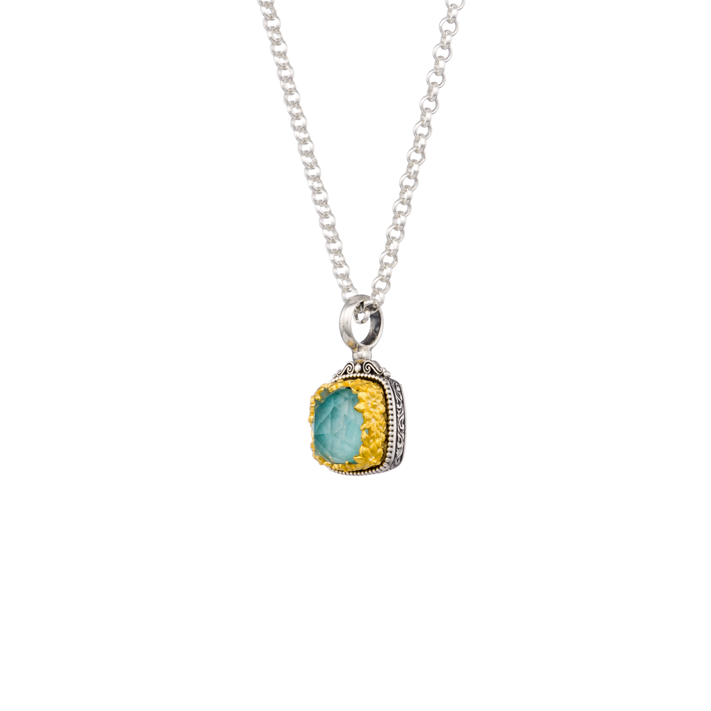 Pendant in sterling silver with Gold plated parts and doublet stone 10x10mm