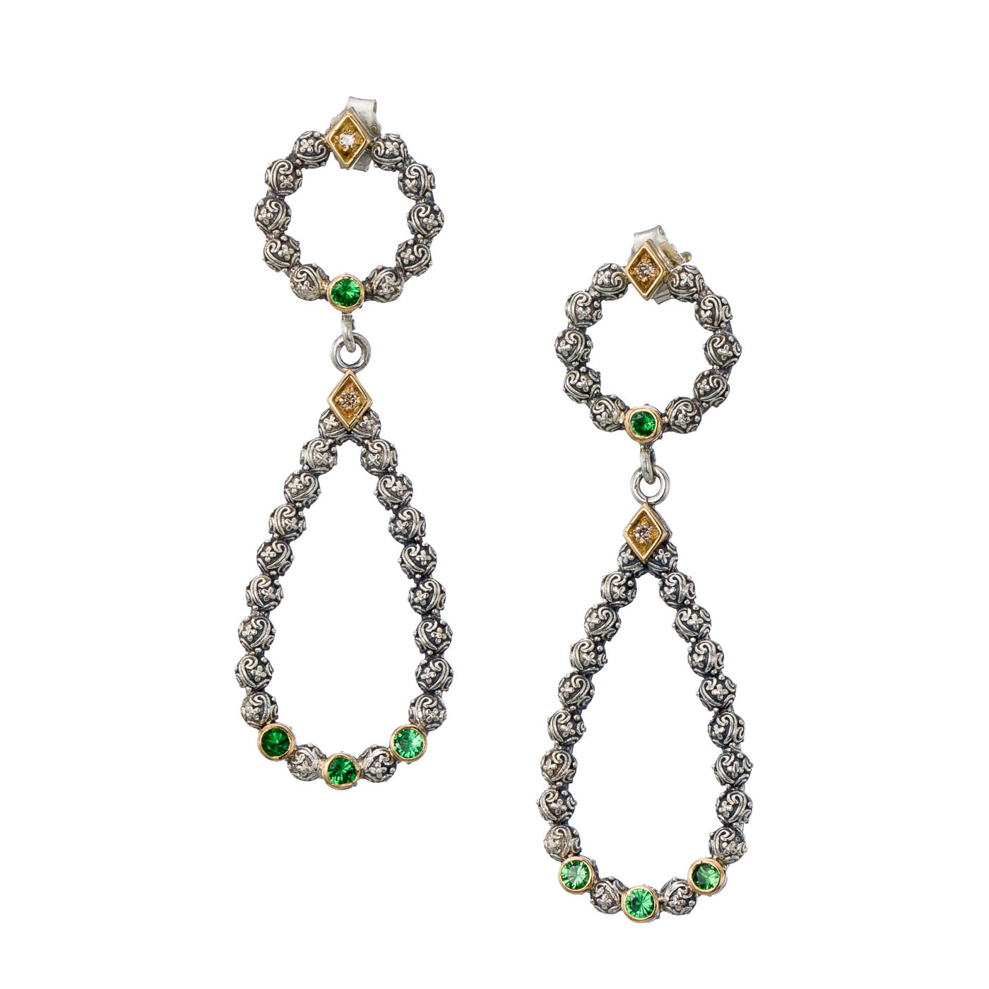 Eden’s Garden Dangle Earrings in 18K Gold and Sterling Silver with Gemstones
