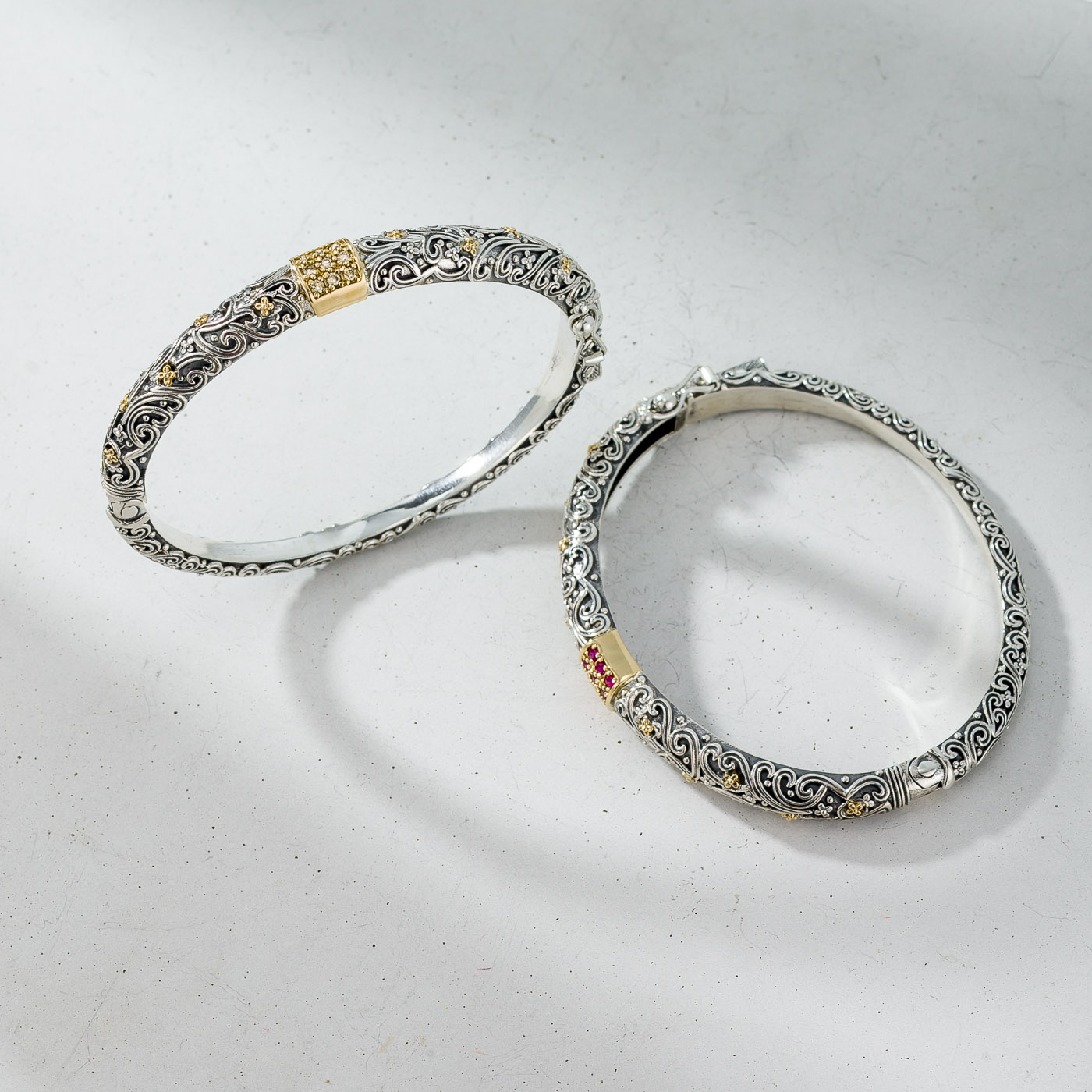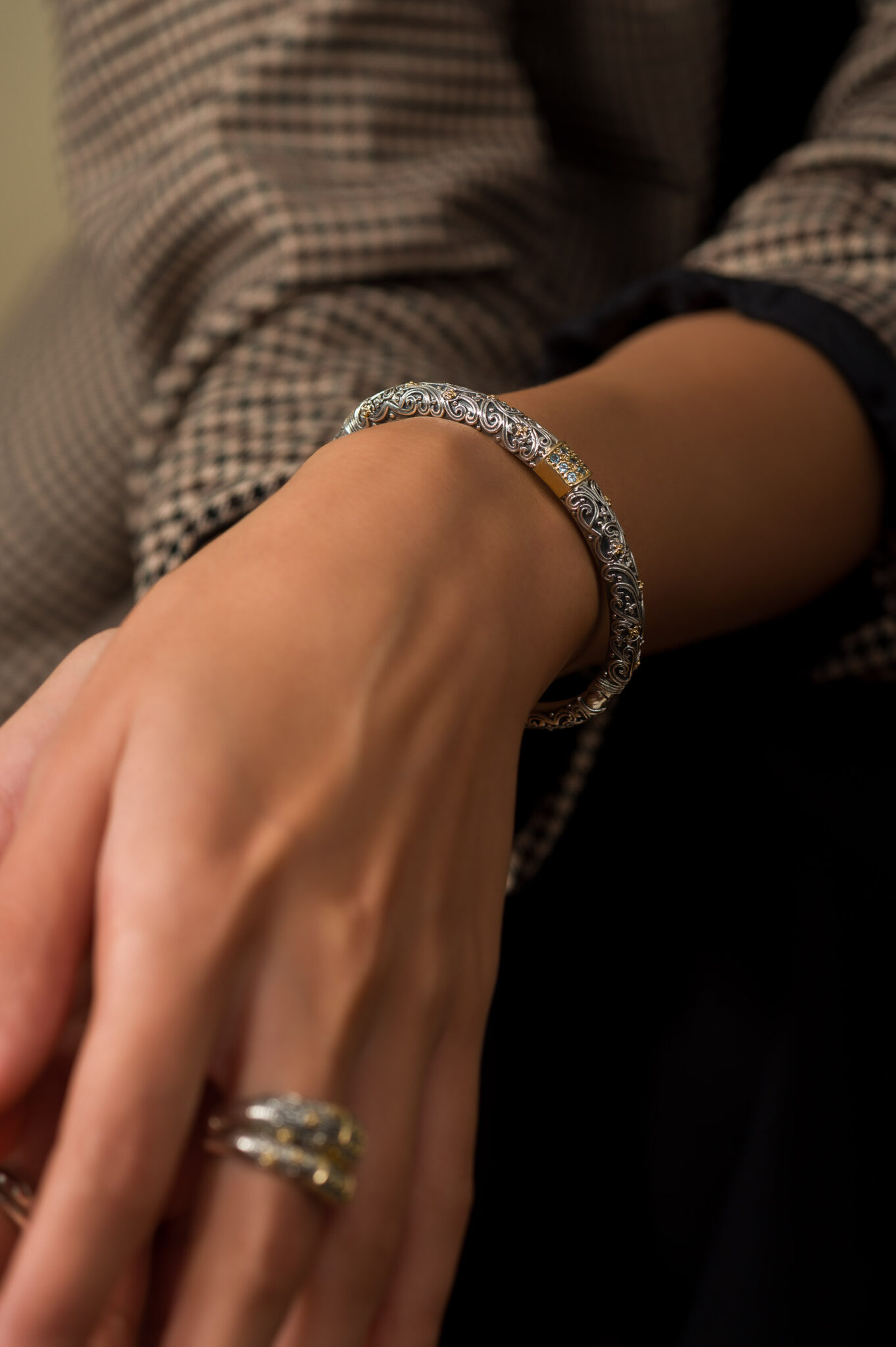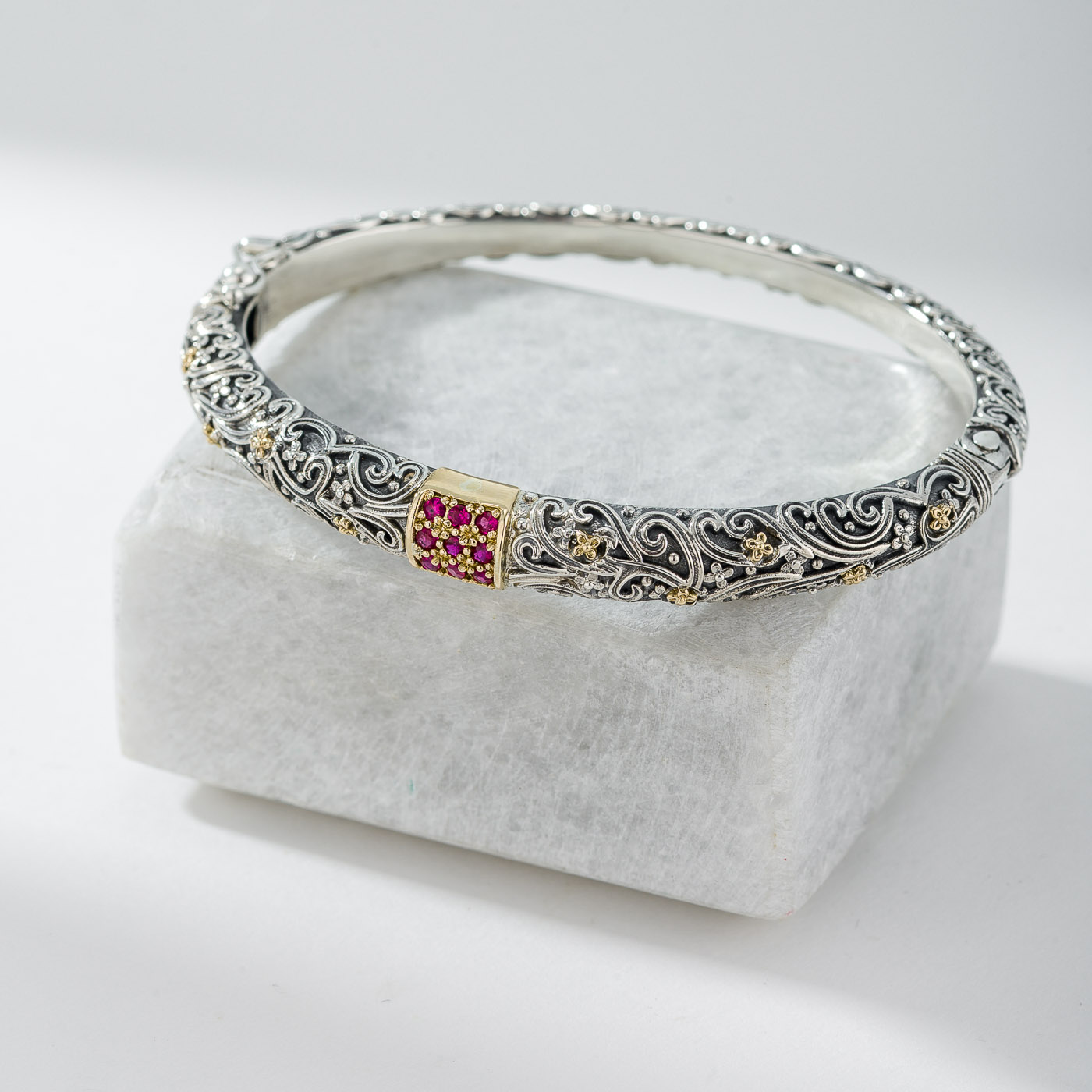 Bracelet in 18K solid Yellow Gold and Sterling Silver with Gemstones.