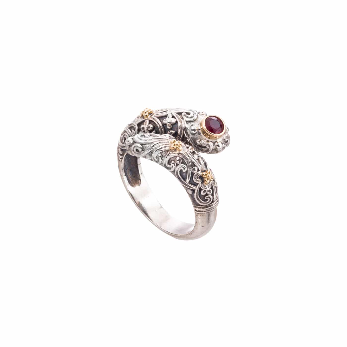 Ring in 18K solid Yellow Gold and sterling silver with ruby.