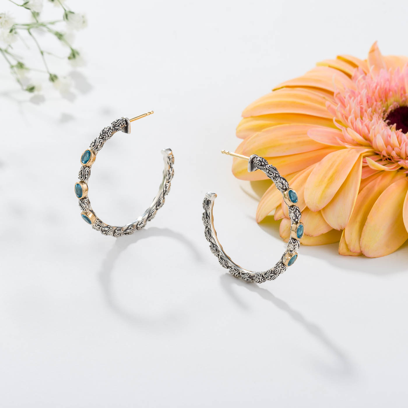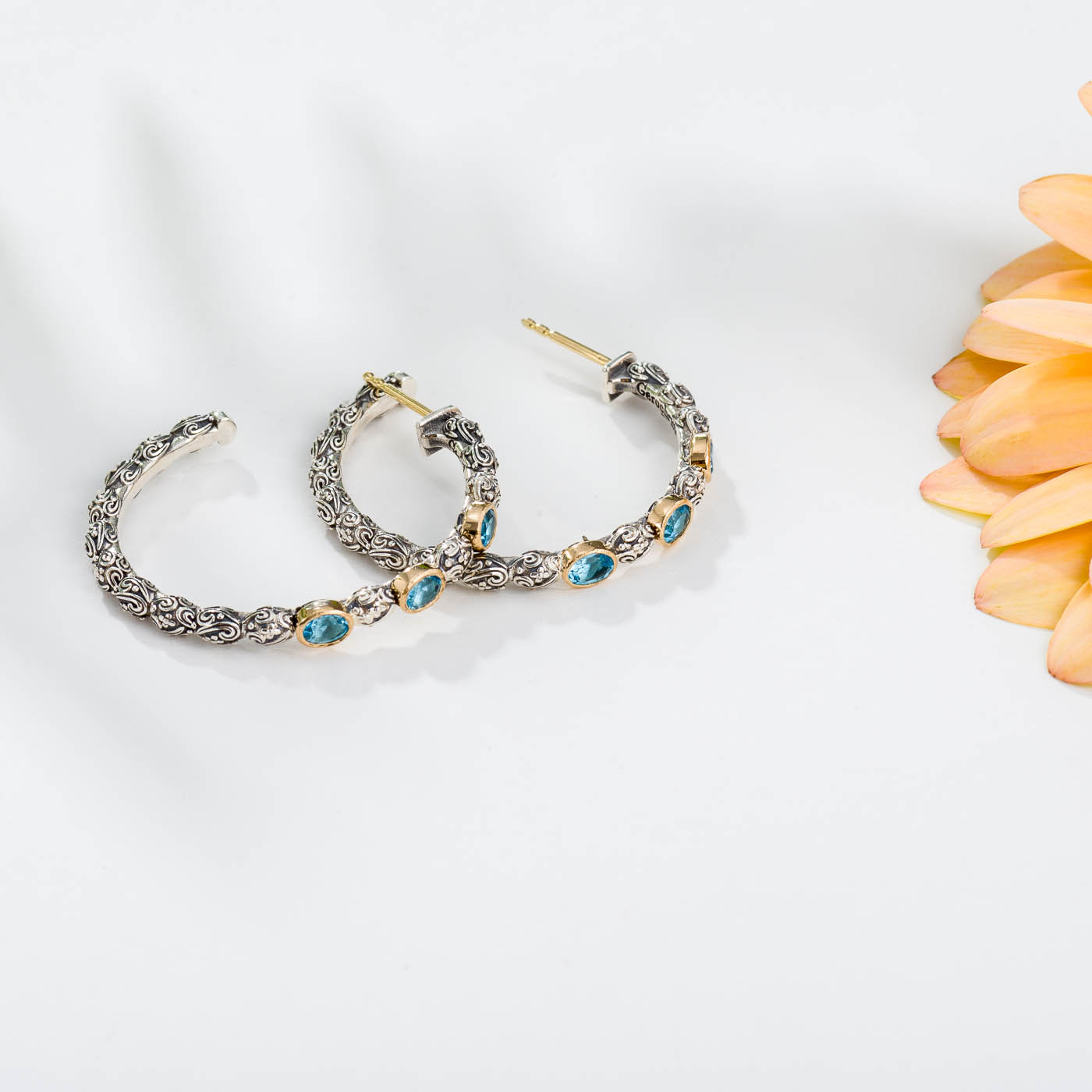 Earrings in Sterling Silver with 18K solid Yellow Gold and Gemstones 3x4mm oval.