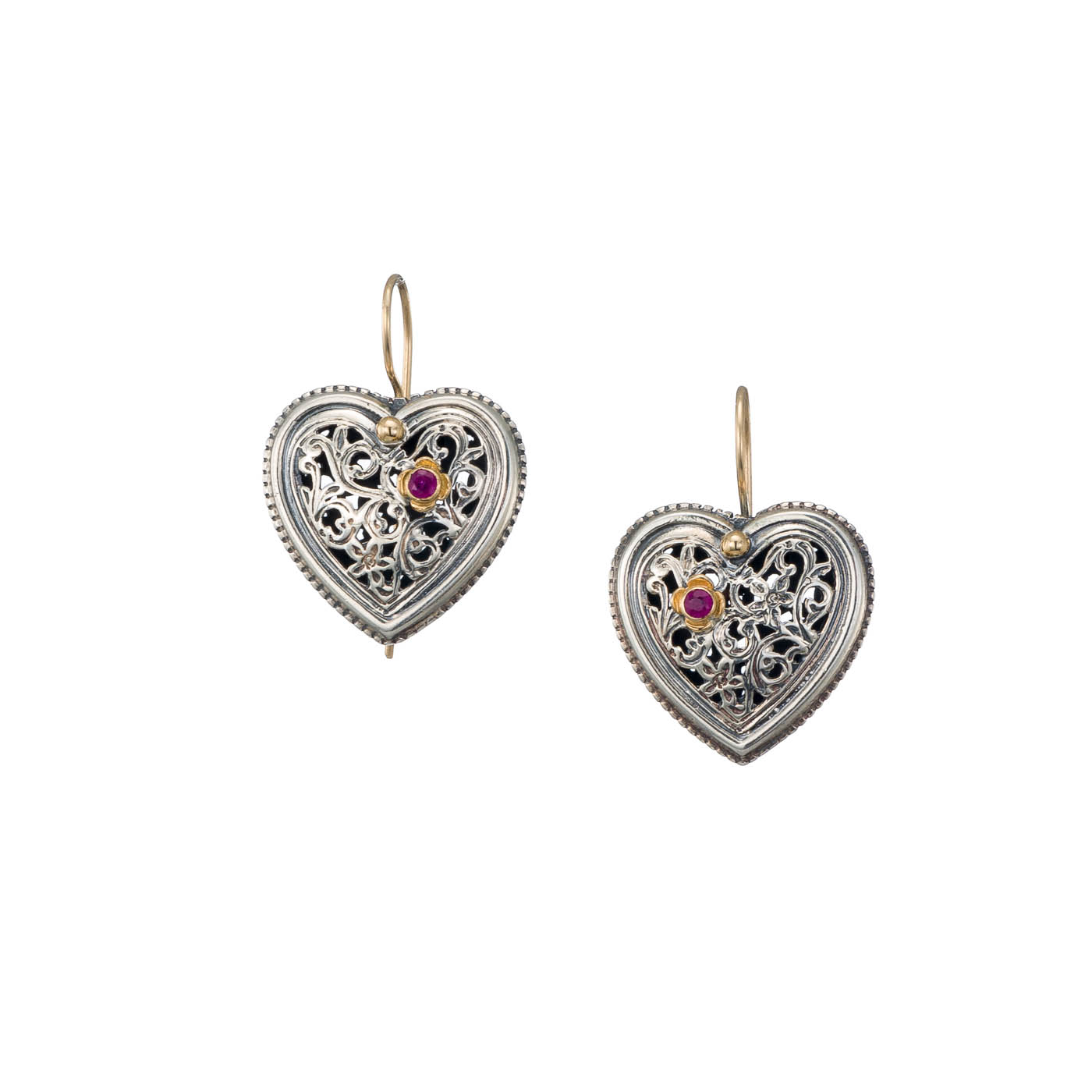 Home / Shop / Women's / Earrings / Classic / Garden Shadows Heart Earrings in 18K Gold and Sterling Silver with Ruby