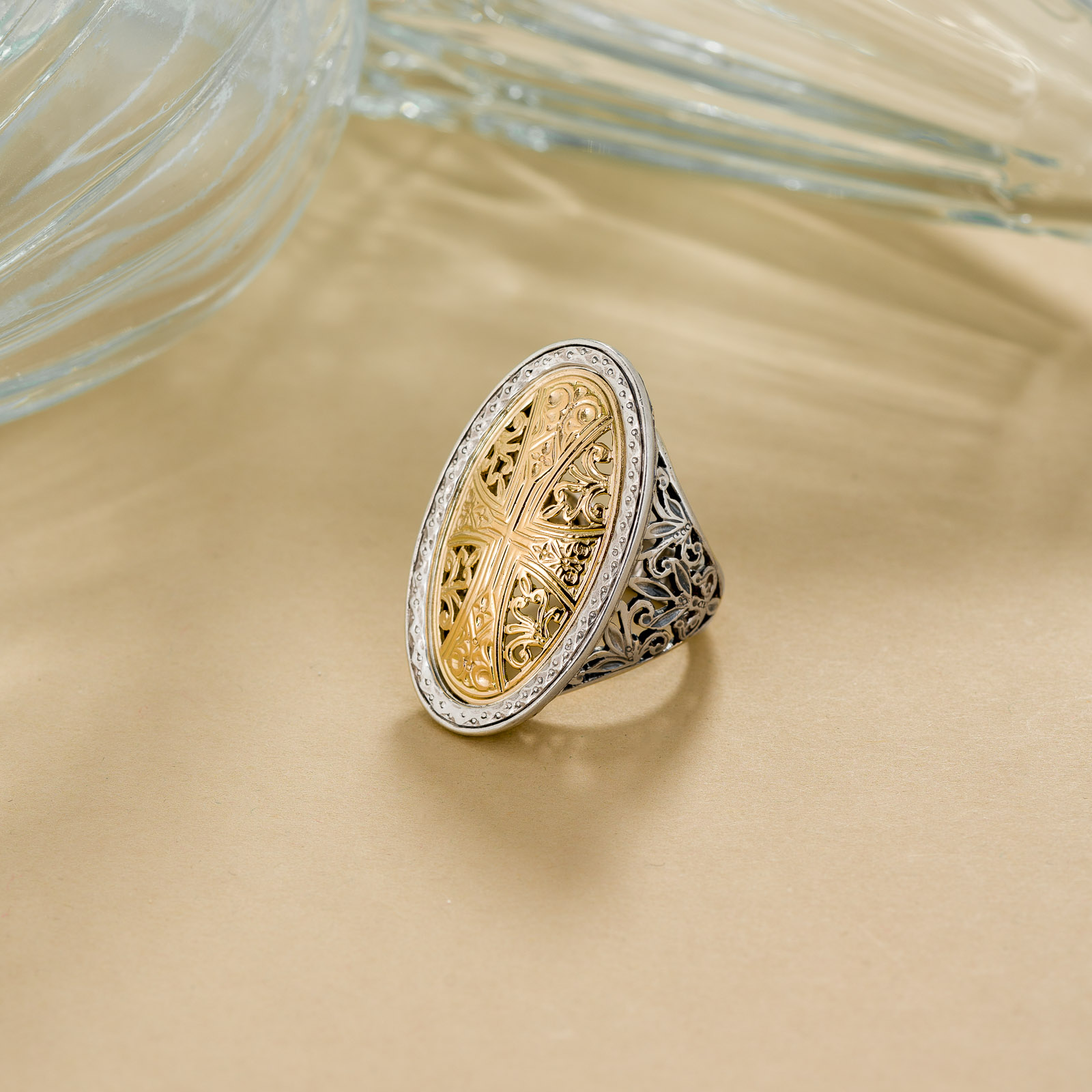 Home / Shop / Women's / Rings / Impressive / Garden Shadows Cross pattern Ring in 18K Gold and Sterling Silver