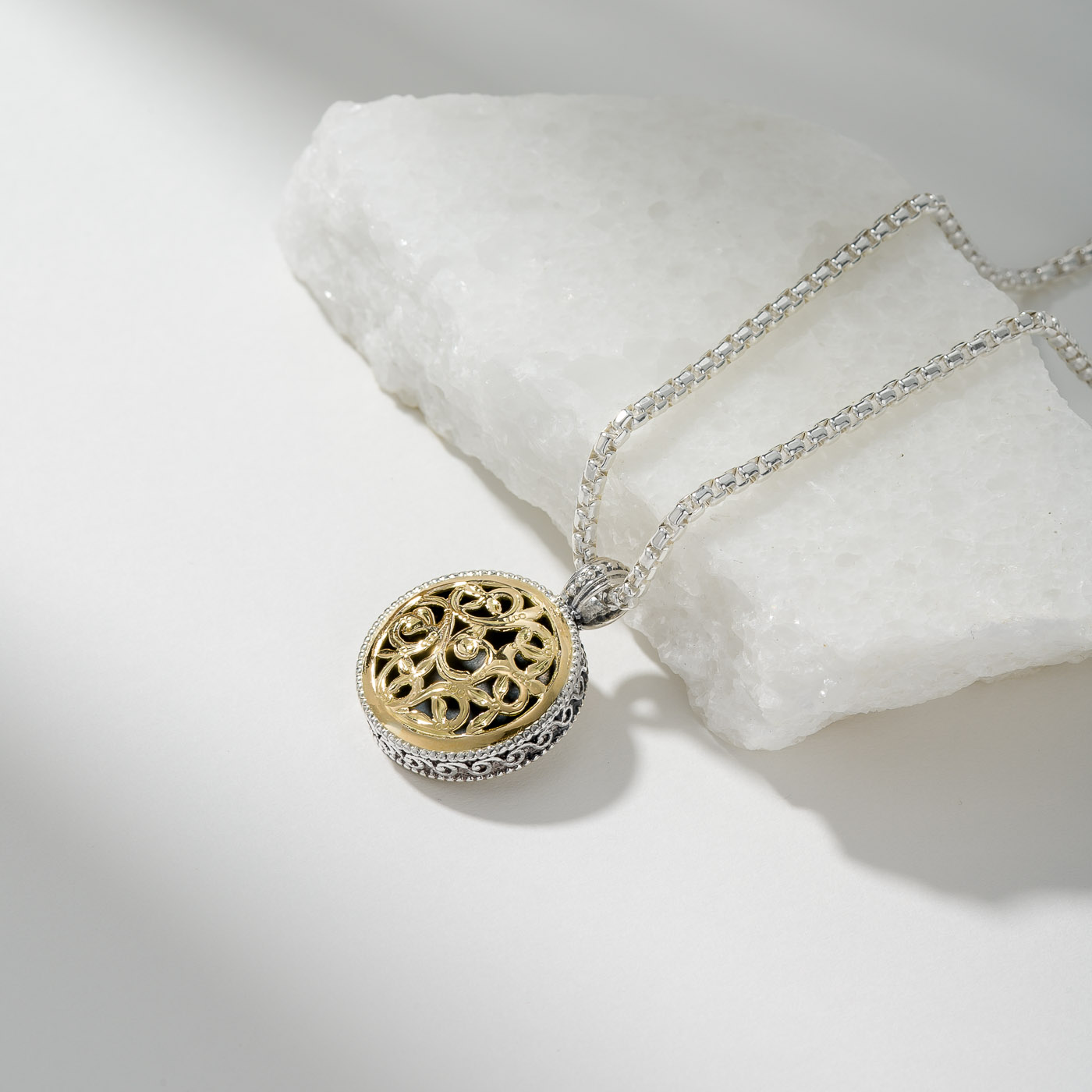 Garden Shadows Round Charm in 18K Gold and Sterling Silver
