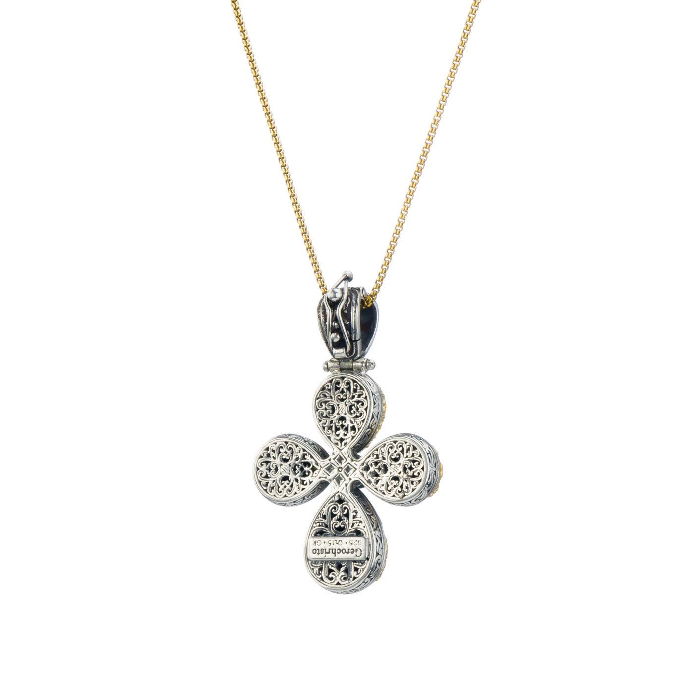 Home / Shop / Women's / Iris cross in sterling silver with Gold plated parts and Doublet Gemstones