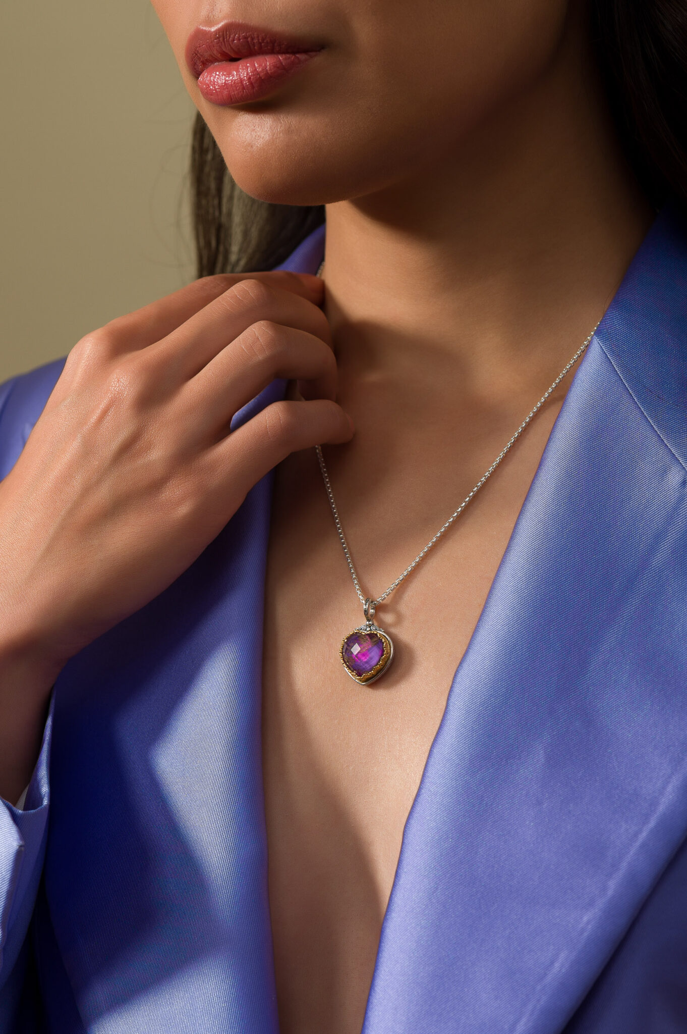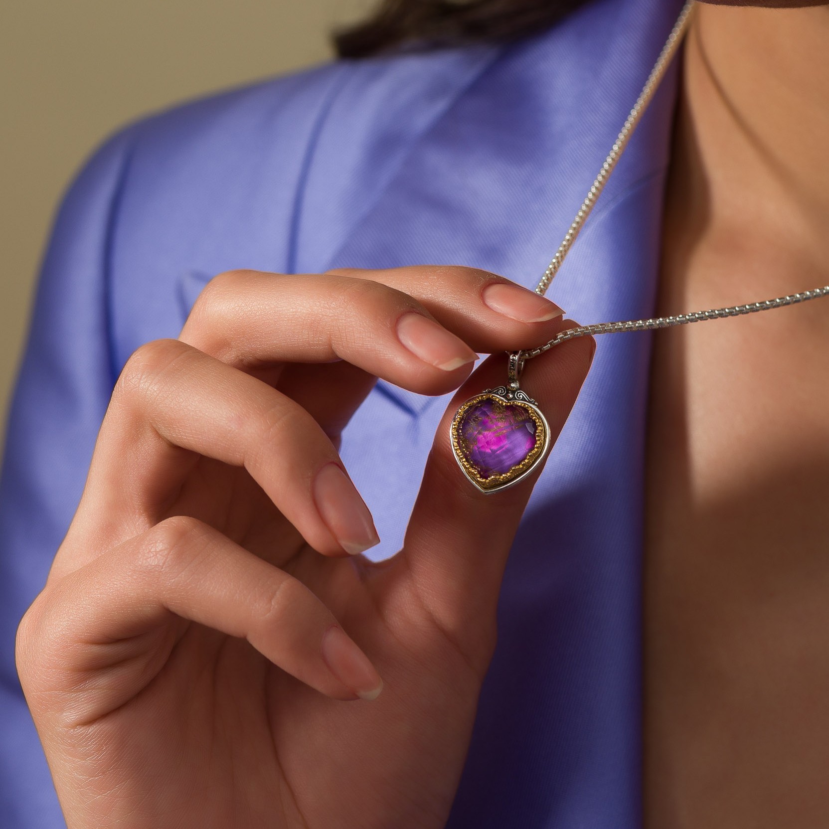 Pendant in sterling silver with Gold plated parts and doublet stone 15x15mm.