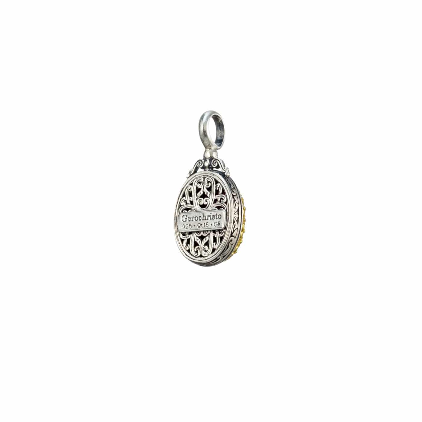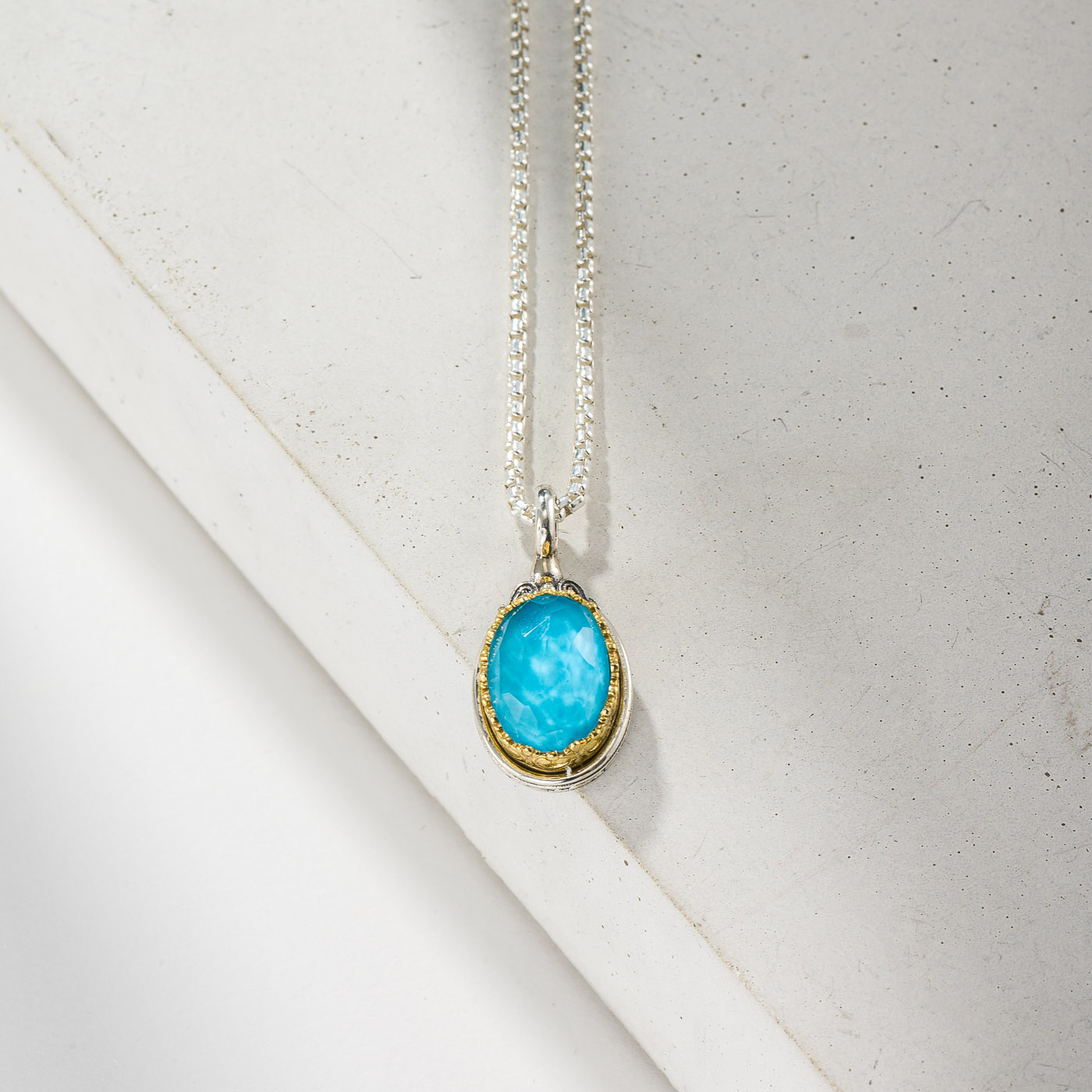 Pendant in sterling silver with Gold plated parts and doublet stone 10x14mm.