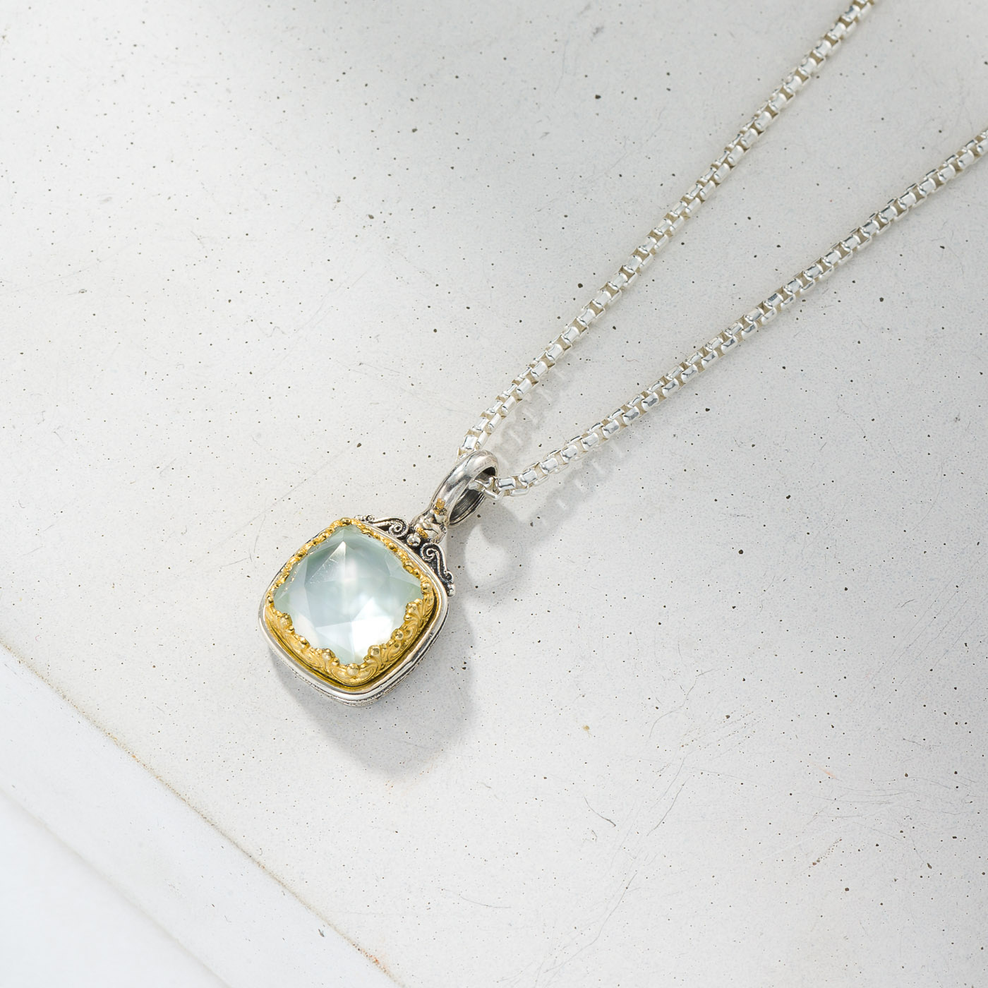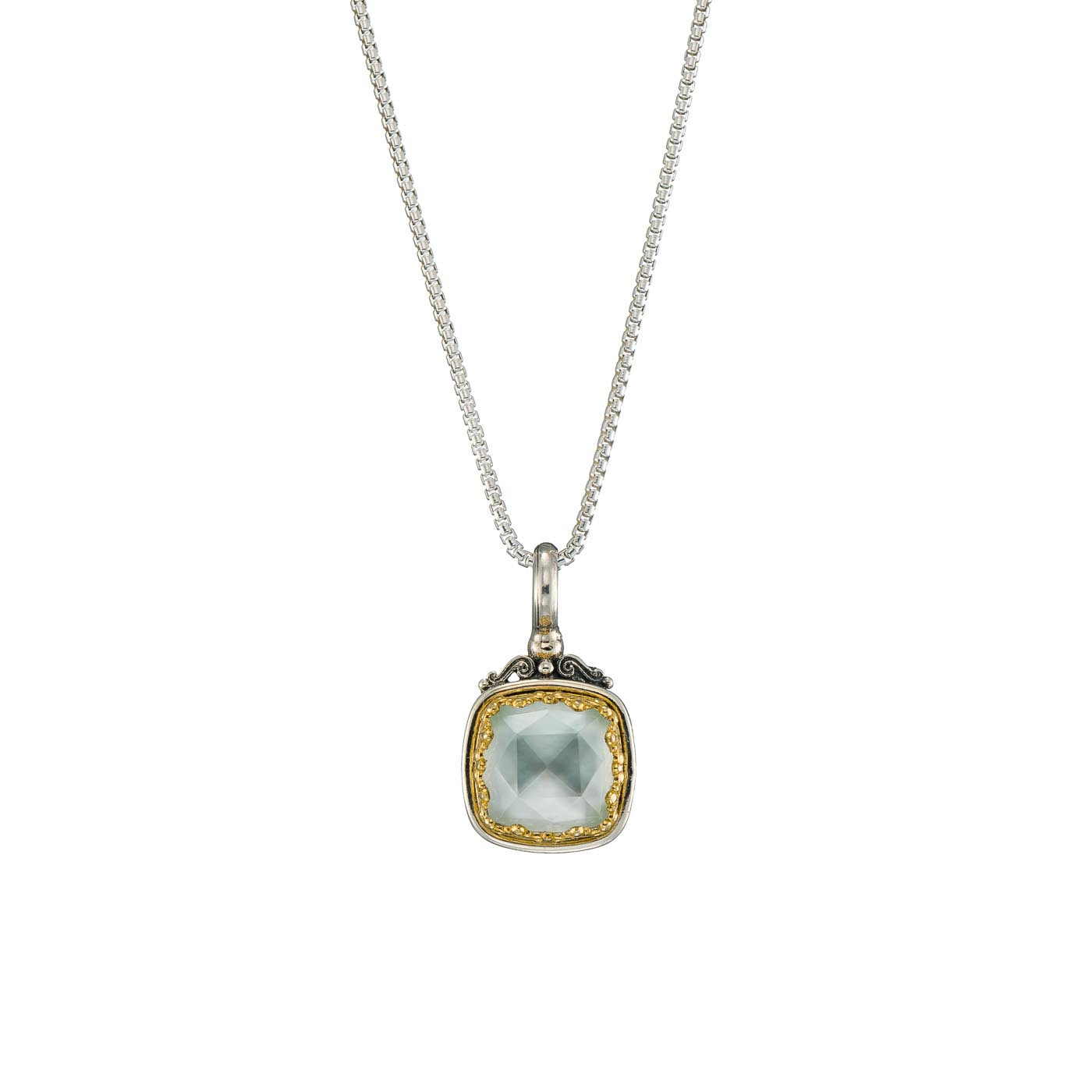 Pendant in sterling silver with Gold plated parts and doublet stone 10x10mm.