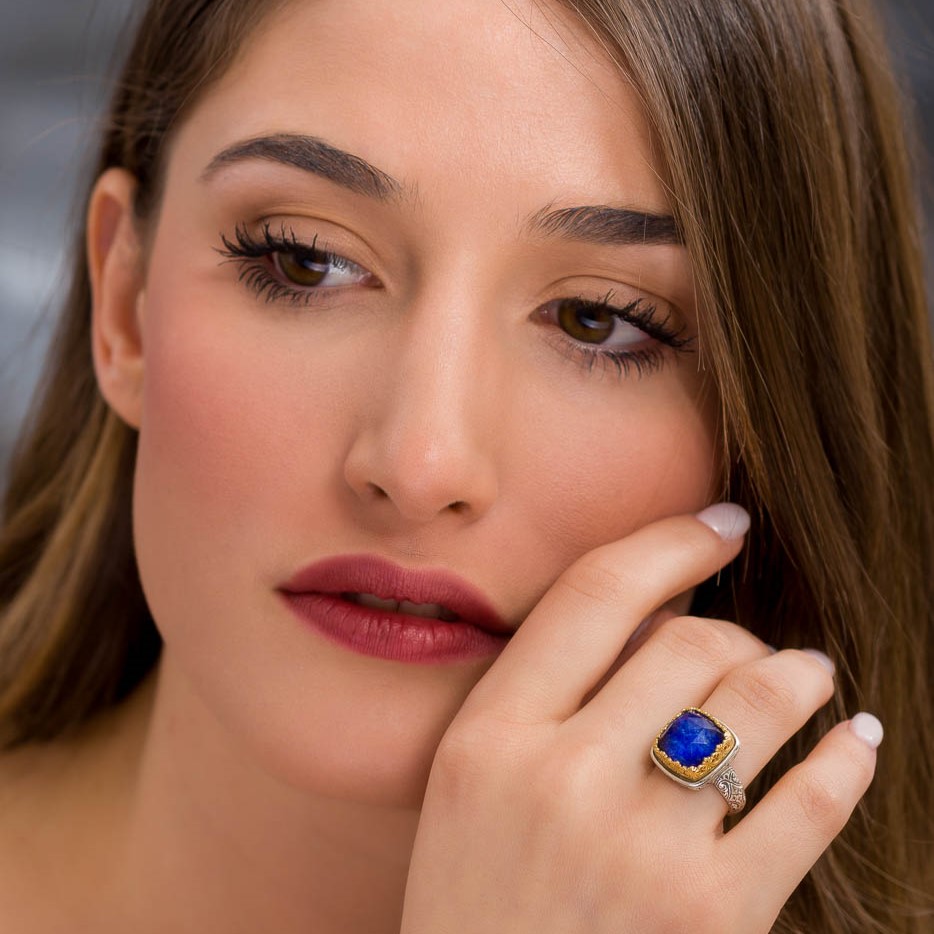 Pendant in sterling silver with Gold plated parts and doublet stone 12x12mm.