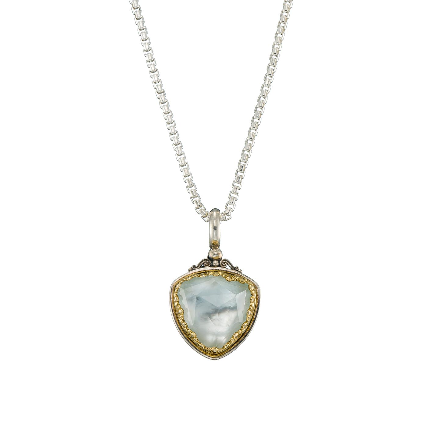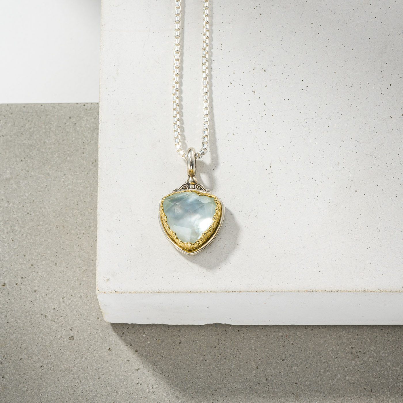 Pendant in sterling silver with Gold plated parts and doublet stone 14x14mm.