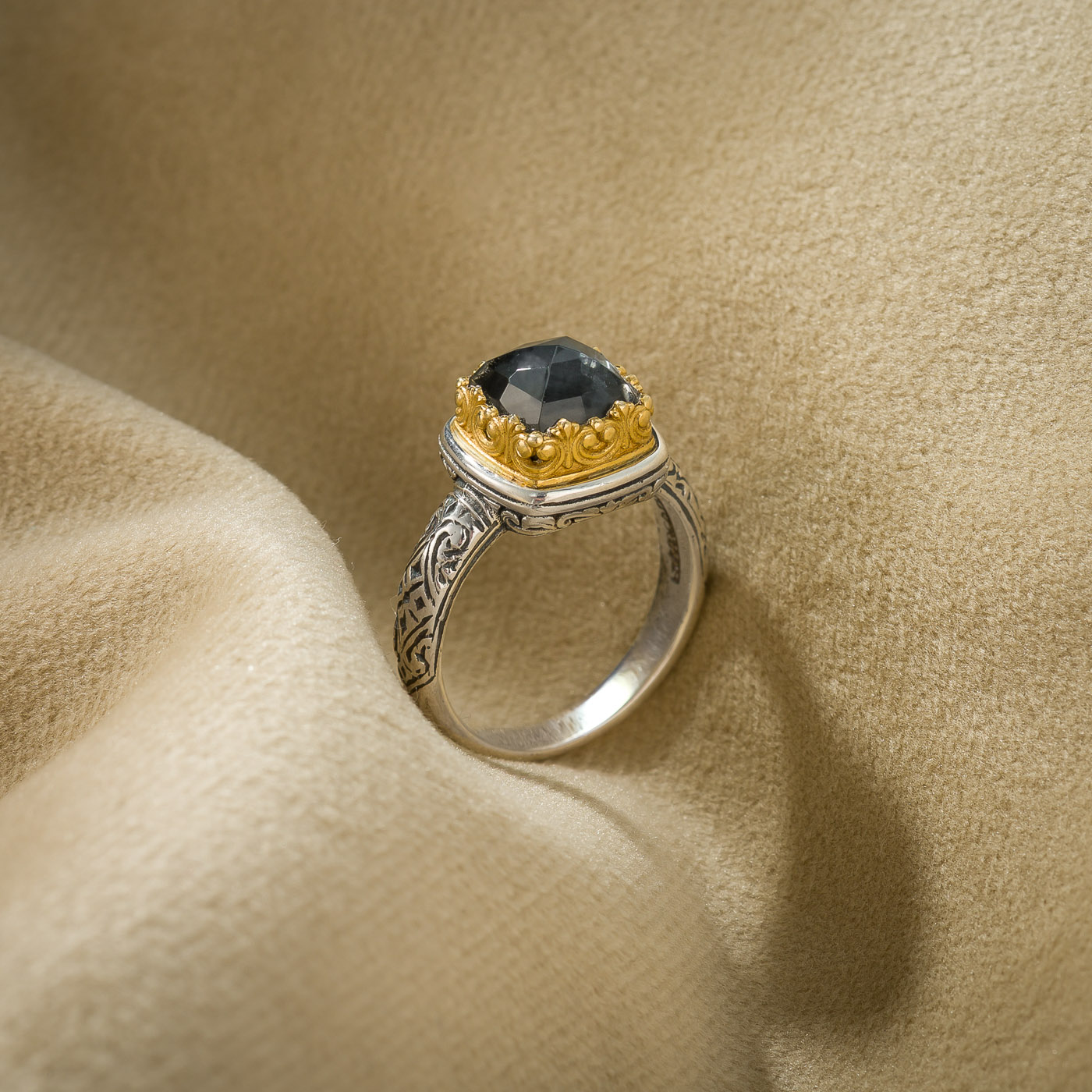 Ring in sterling silver with gold plated parts and doublet stone 8x8mm.