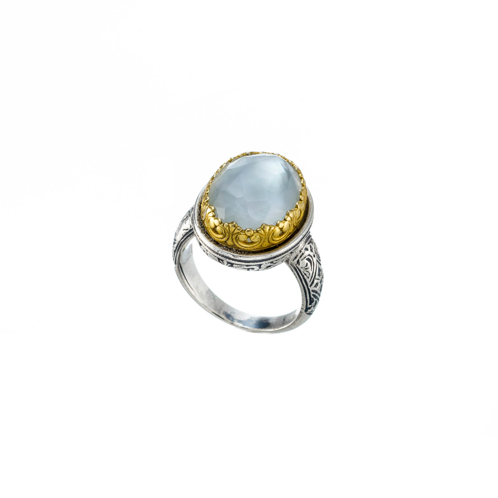 Ring in sterling silver with Gold plated parts with doublet stone 12x16mm.