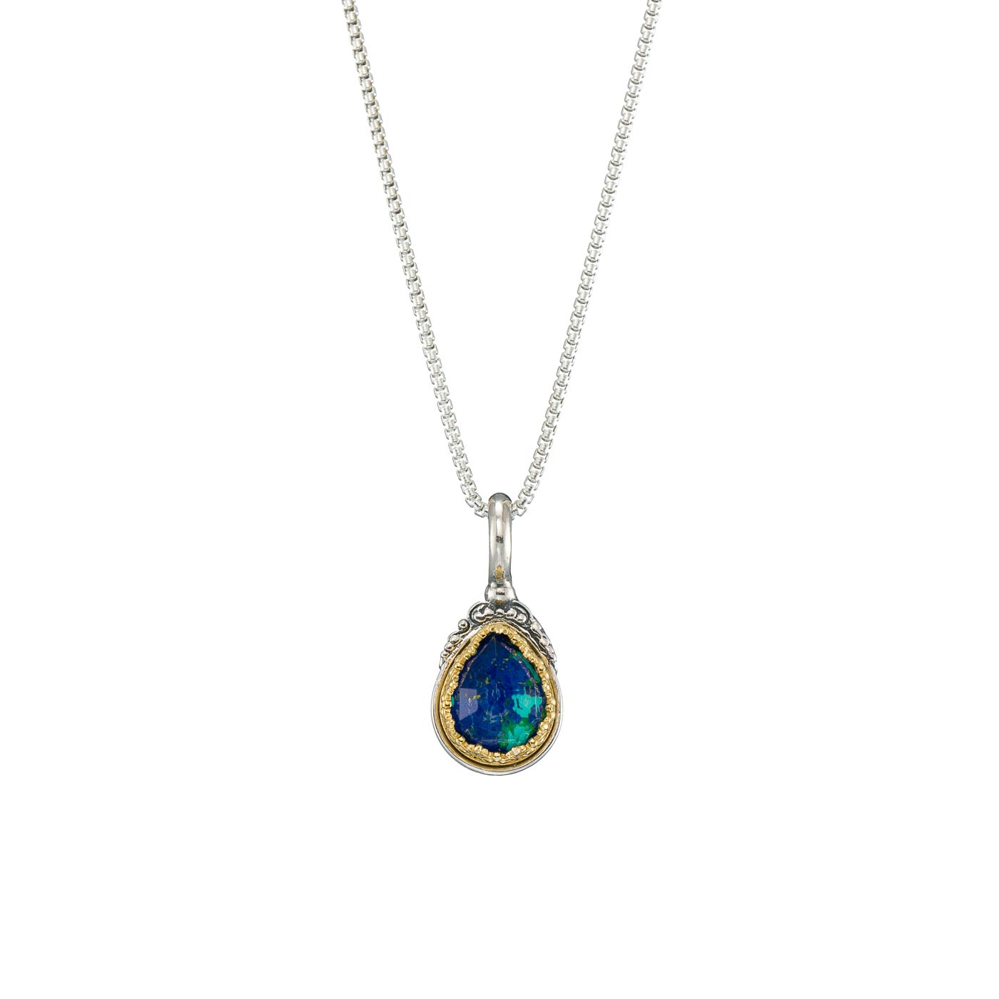 Iris small Drop Pendant in Sterling Silver with Gold plated parts and Doublet Gemstone